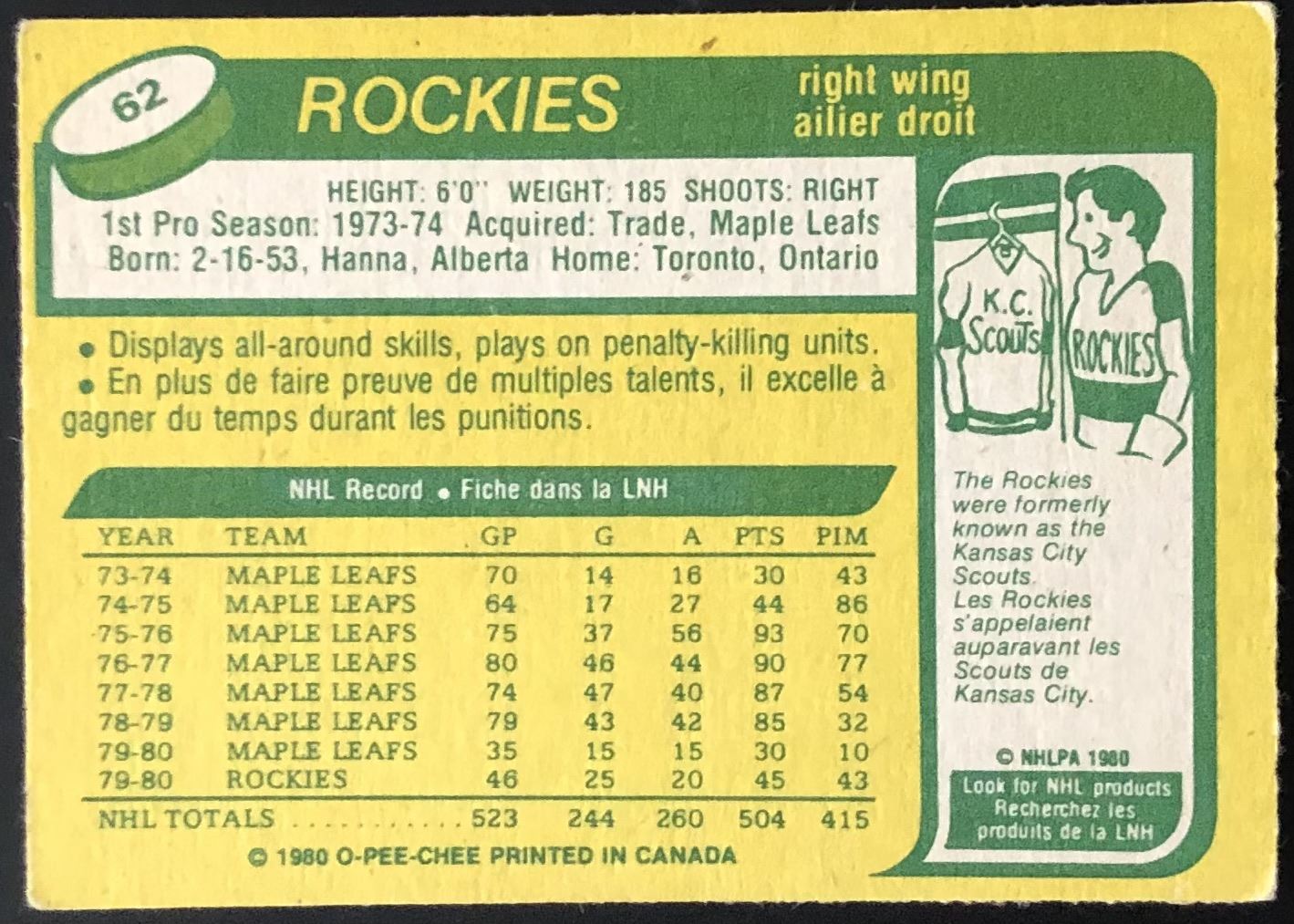 Card #62 OPC, NHL, hockey, vintage, hall of fame