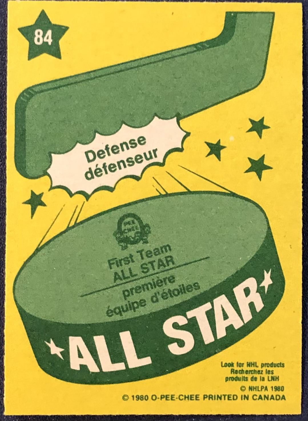 Card #84 NHL, hockey, vintage, OPC, hall of fame