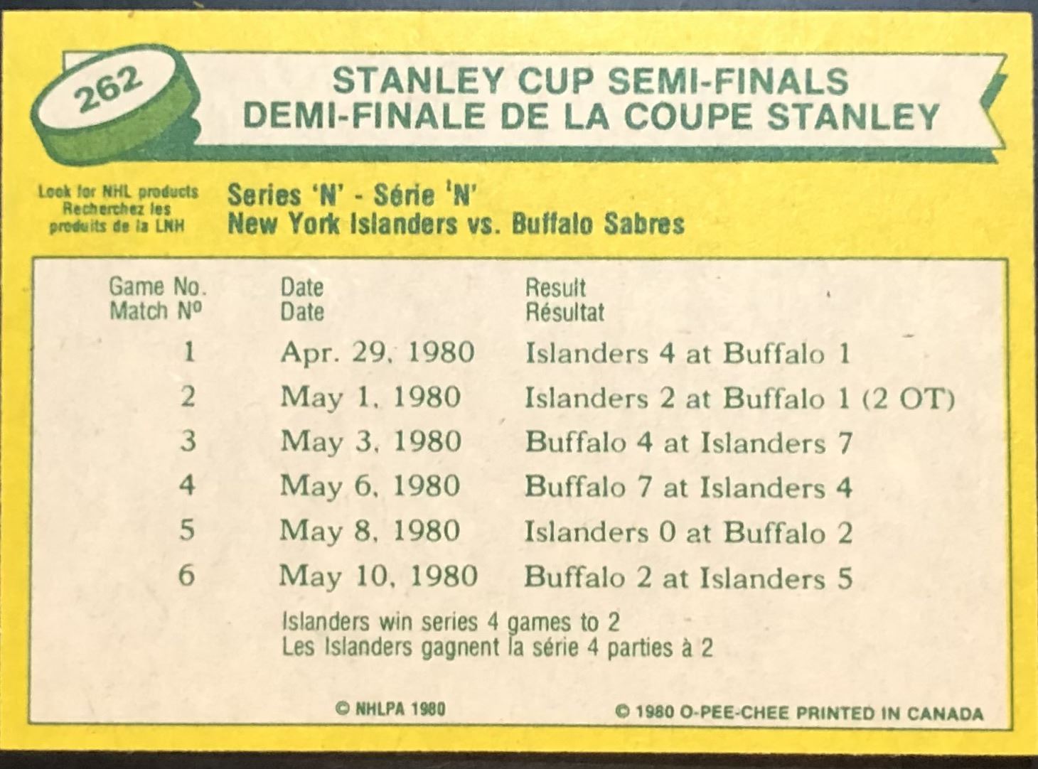 Card #262 NHL, hockey, OPC, hall of fame, vintage