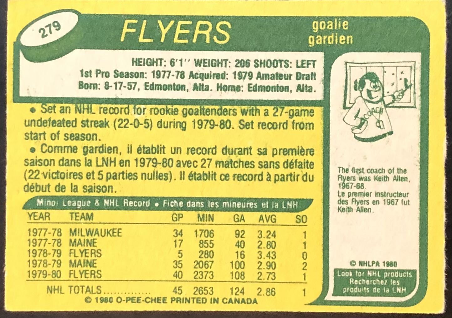 Card #279 OPC, vintage, NHL, hockey, rookie