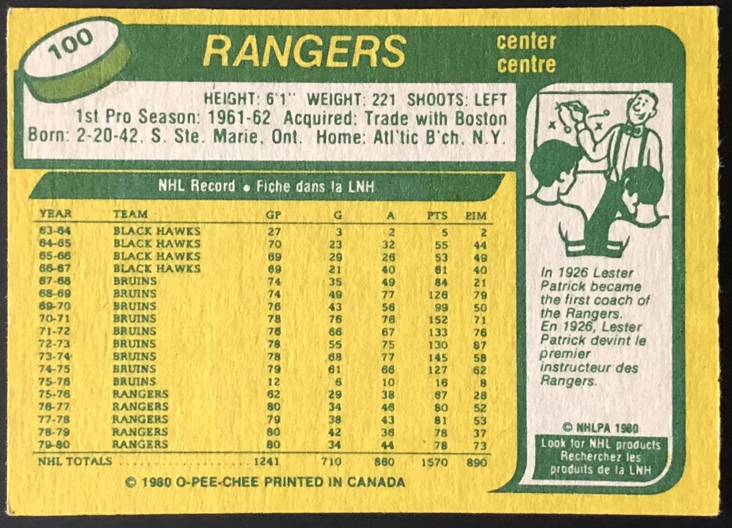 Card #100 OPC, NHL, hockey, vintage, hall of fame