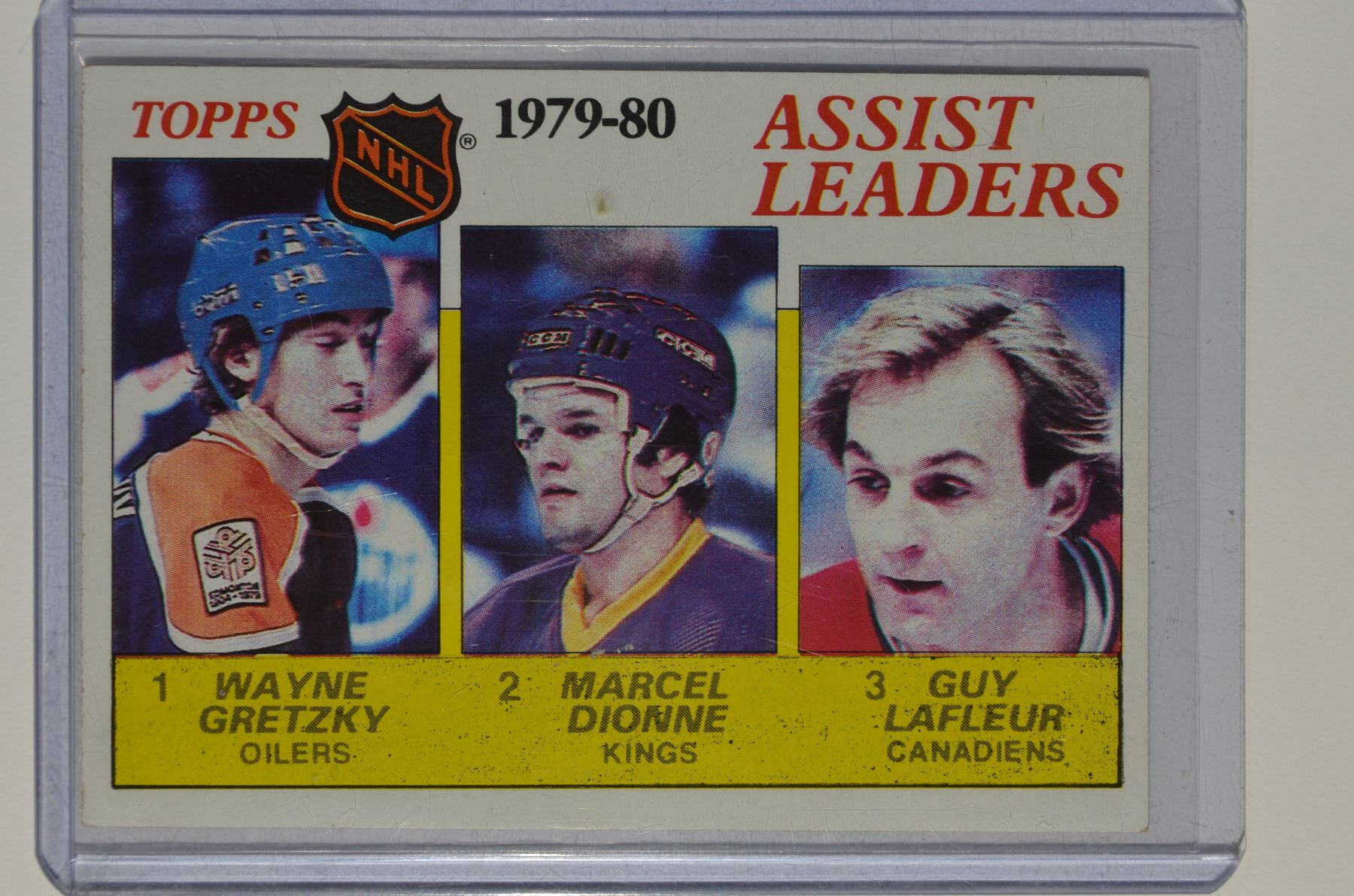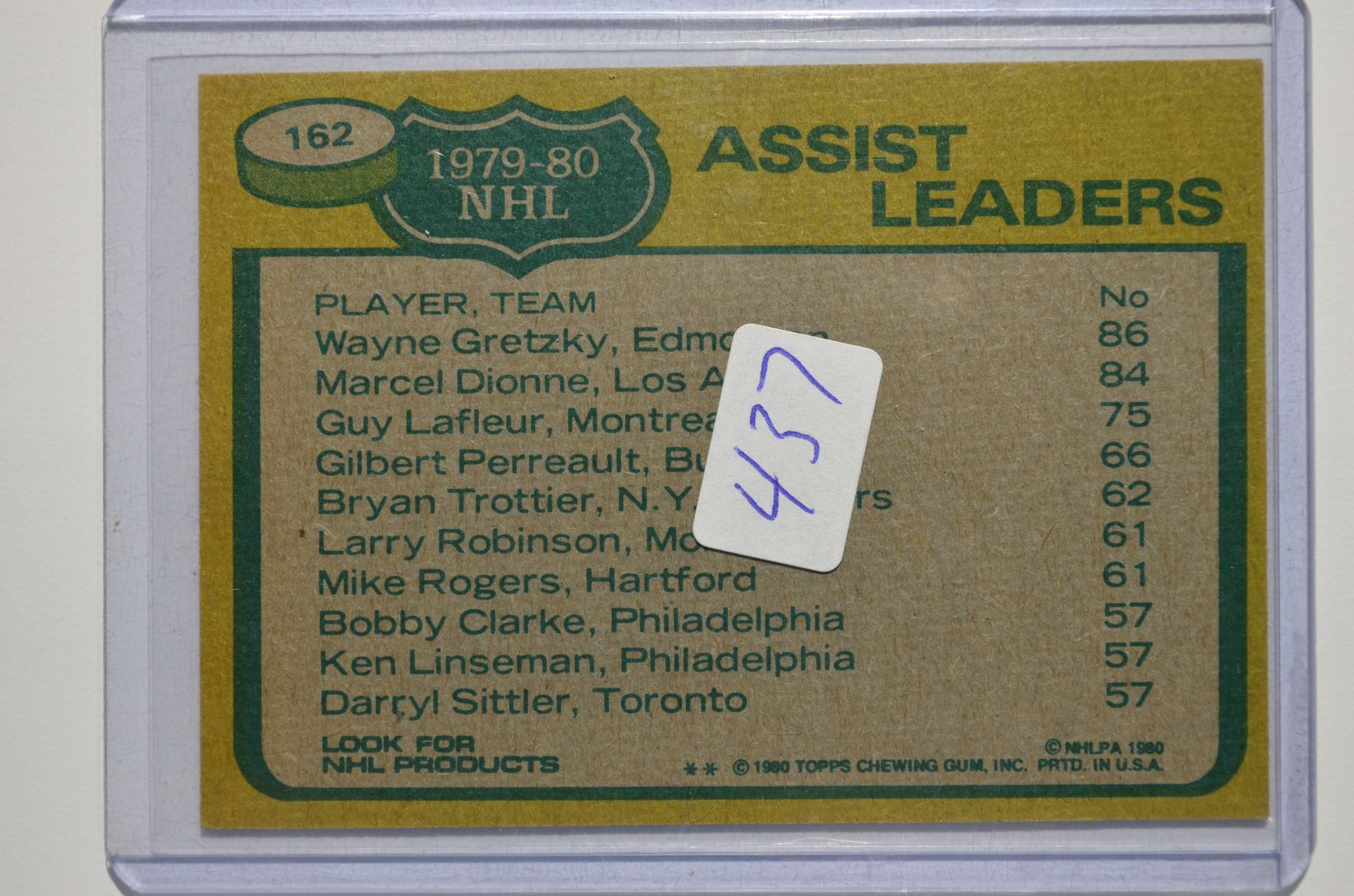 1980-81 O-Pee-Chee #162 Assists Leaders/Wayne Gretzky (1)/Marcel Dionne (2)/Guy Lafleur (3)