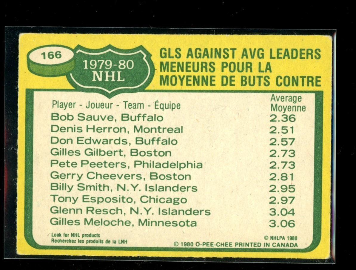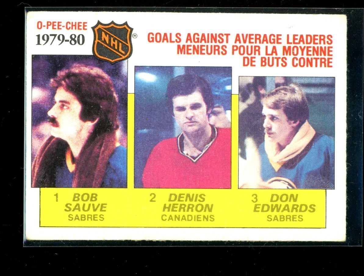1980-81 O-Pee-Chee #166 Goals Against Avg./Leaders/Bob Sauve (1)/Denis Herron (2)/Don Edwards (3)