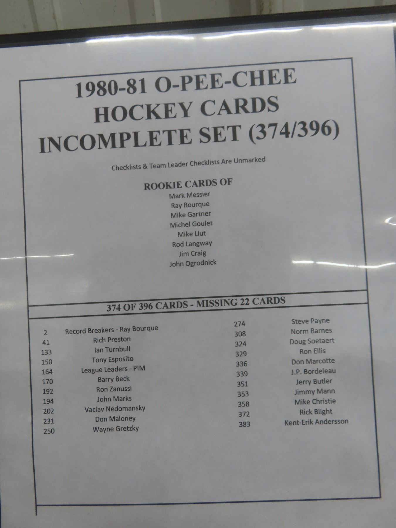 1980–81 O-Pee-Chee Incomplete Hockey Card Set, 374 Cards