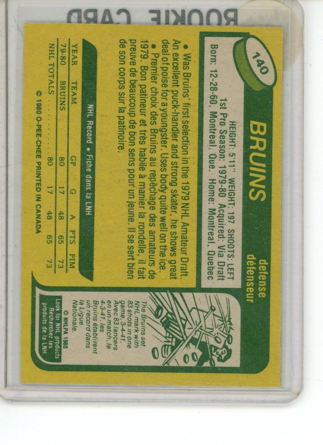 1980-81 OPC Roy Bourque Rookie card #140