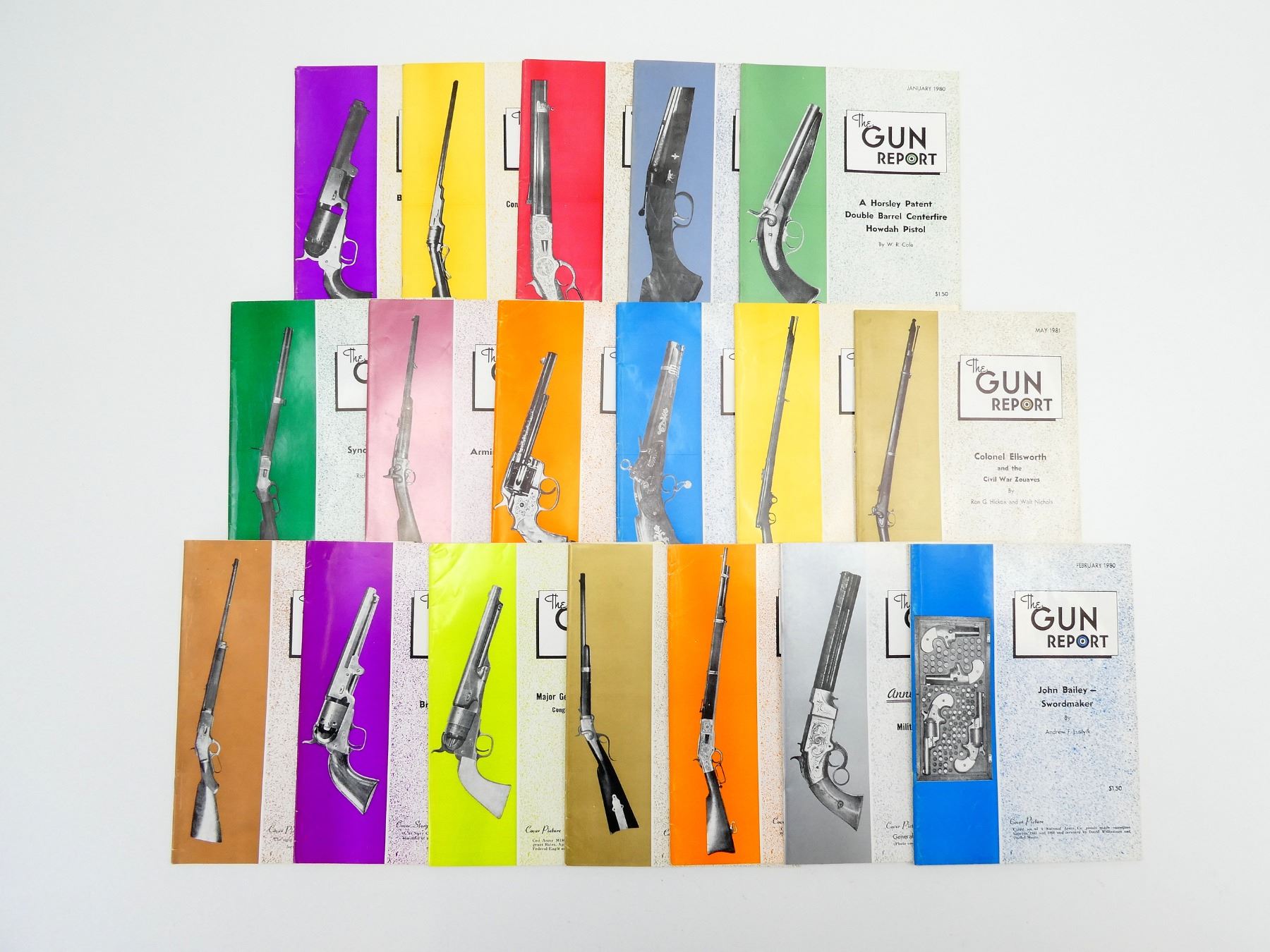 LOT INCLUDES; (18) ASSORTED BOOKS OF "THE GUN REPORT", JANUARY 1980 TO JUNE 1981, SERIES MAY NOT BE COMPLETE / SOME ISSUES MISSING / MAY CONTAIN DUPLICATES. SEE PHOTOS.
