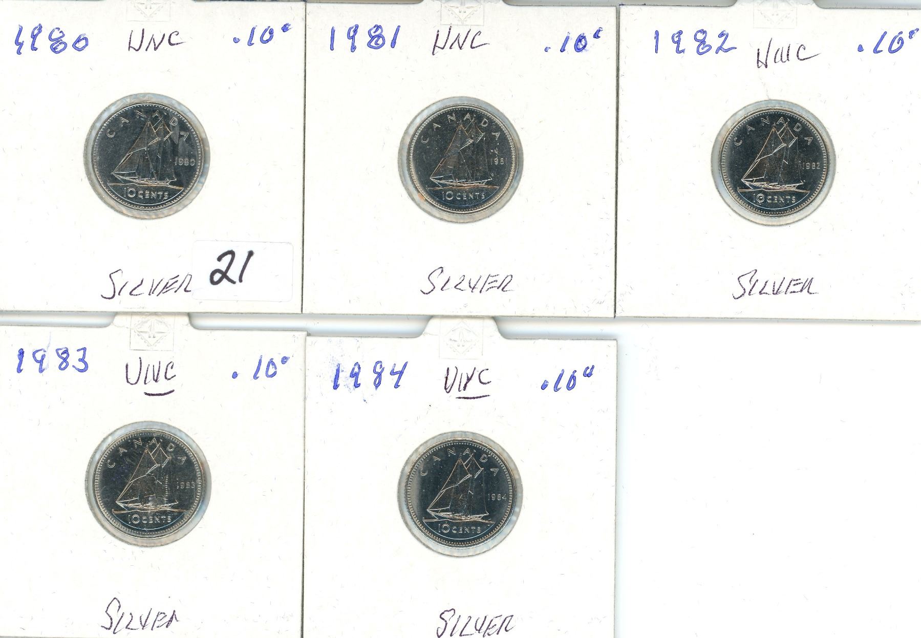 1980-84 (5) 10¢ UNC Silver Coins