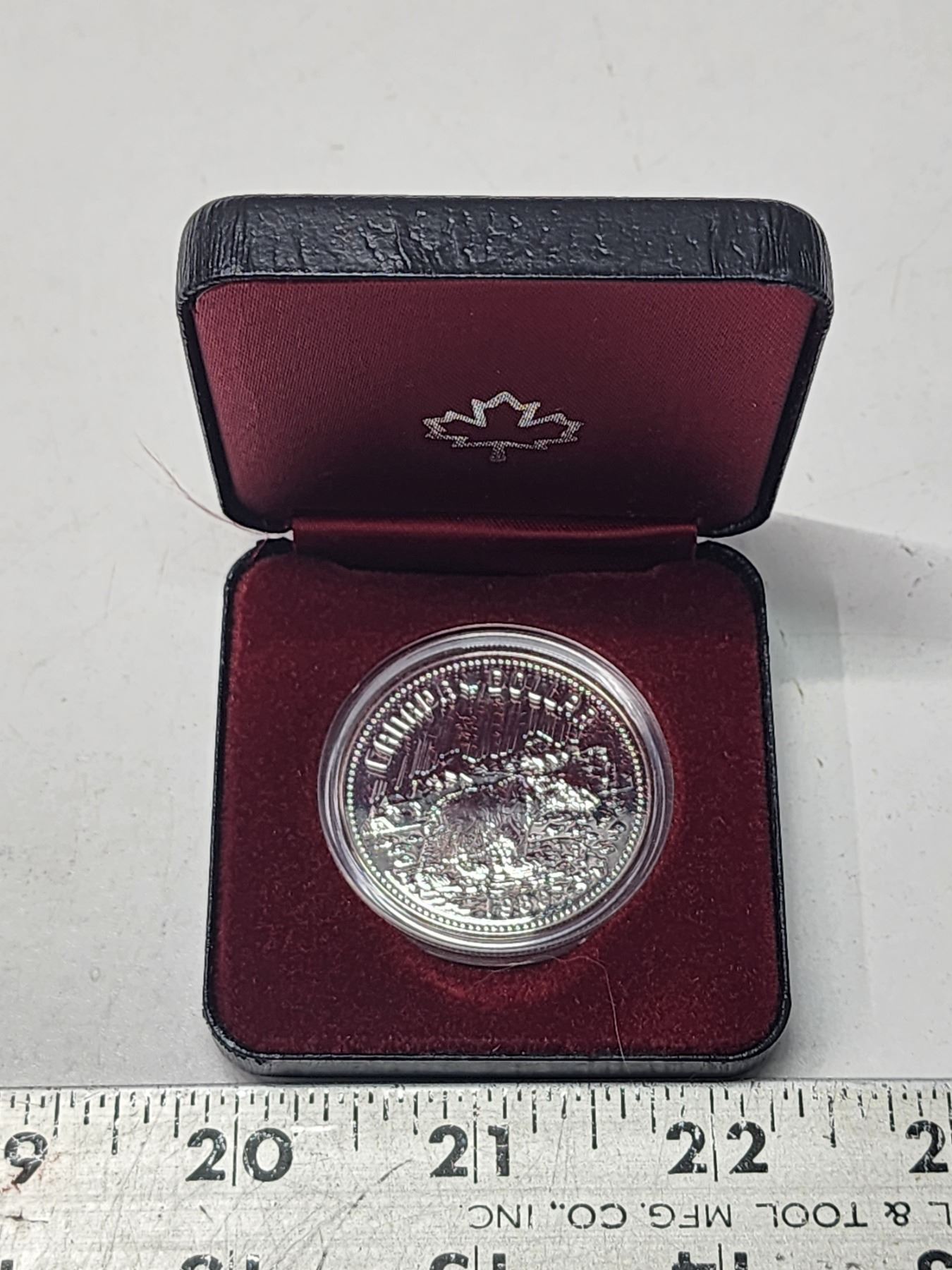 1980 Arctic Silver Dollar. Commemorates the 100th Anniversary of Great Britain ceding the Arctic Islands to Canada. Popular Polar Bear. Housed in its original black case of issue. Specimen.