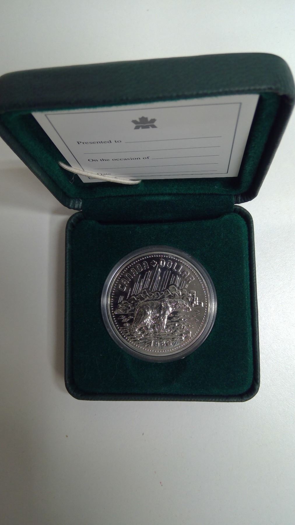 1980 Arctic Silver Dollar. Commemorates the 100th Anniversary of the transfer of the Arctic Islands from Britain to Canada. Polar Bear. Specimen. Cased.
