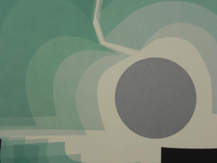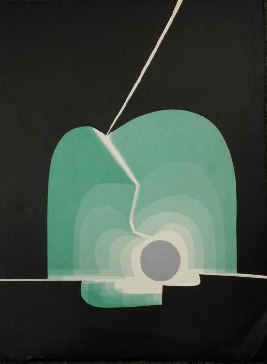 Come take an extraordinary journey to the center of the Earth...Signature: Signed by artist, lower rightMedium: Lithograph on paper with uncut edgesEdition: 96/99, lower leftDate: 1980Size: 22" x 29 3/4"Condition: Very good; creased to bottom right corner