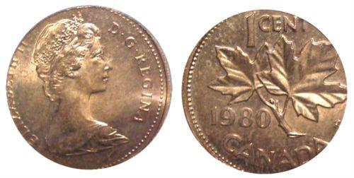 0519 - 1980 Canada 1 Cent Mint Error-PCGS MS64RB