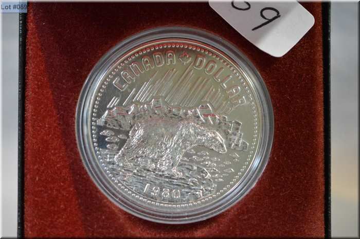 1980 Canada silver dollar Artic Territories Centennial, marks centenary of The Transfer of the Arctic iIslands from the British Government to Dominion of Canada