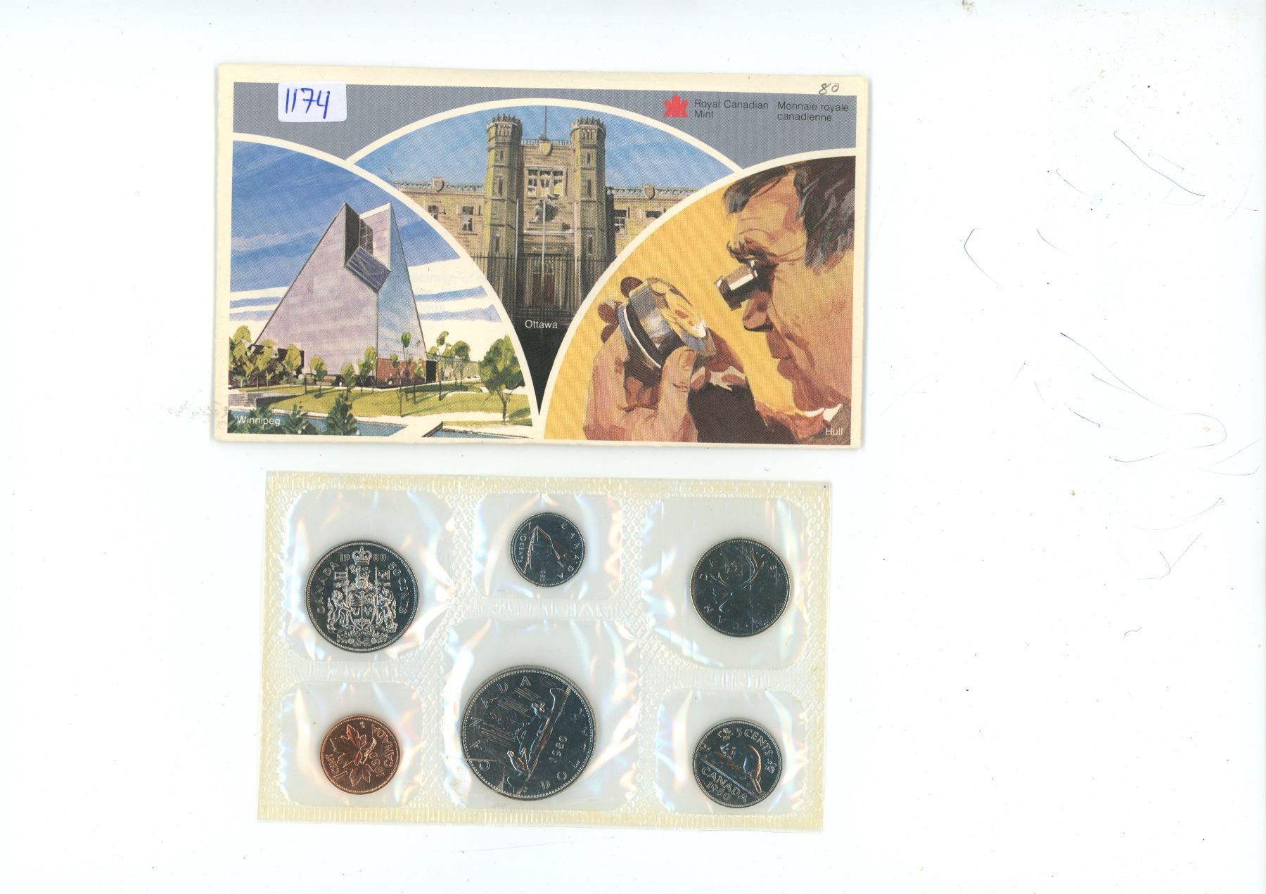 1980 Canadian Proof Like Set. 6-coin set.