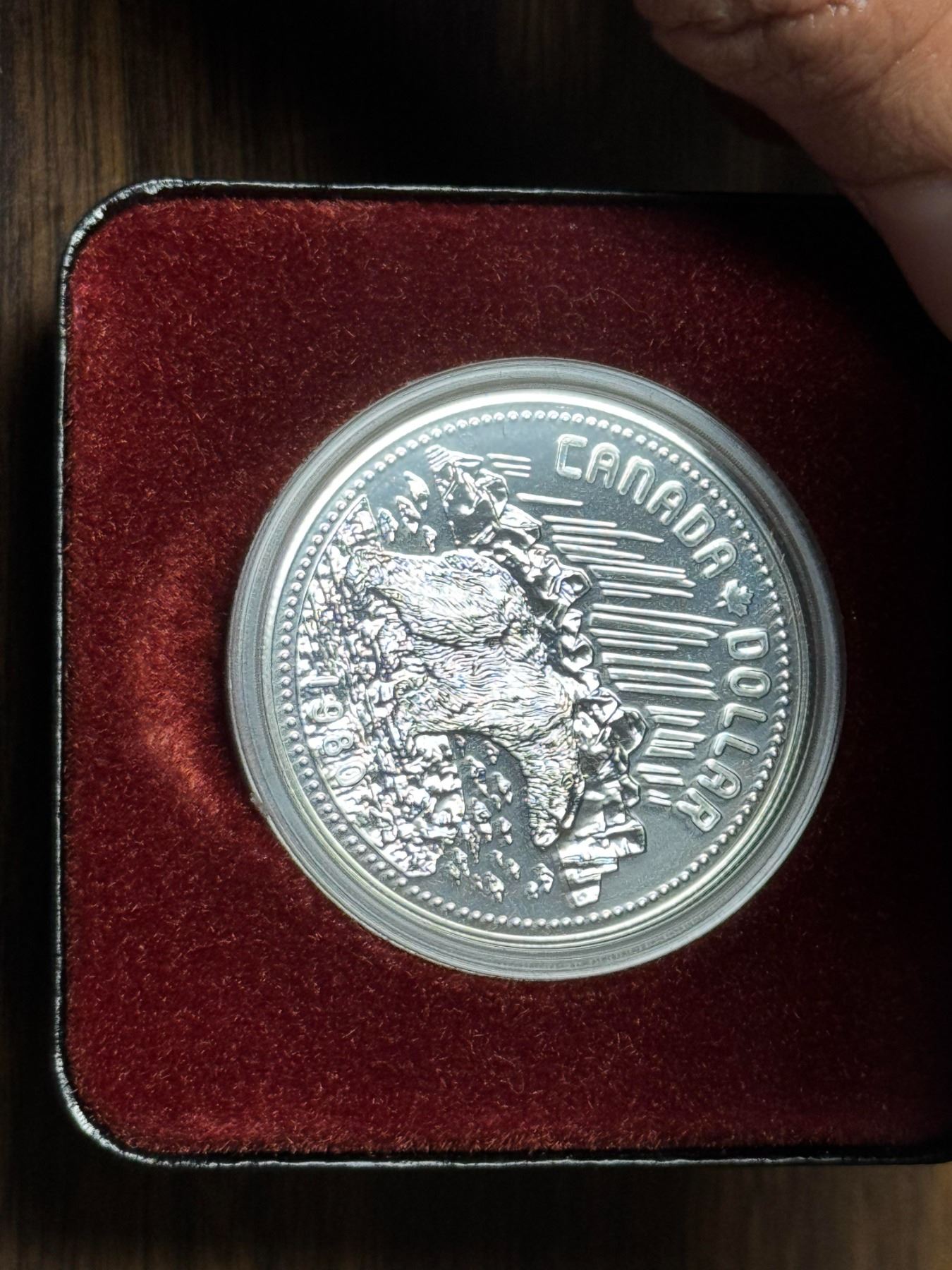 1980 Canadian Silver Dollar. Commemorates the 100th Anniversary of Great Britain ceding the Arctic Islands to Canada. Popular Polar Bear. Specimen. Housed in its original Royal Canadian Mint case.