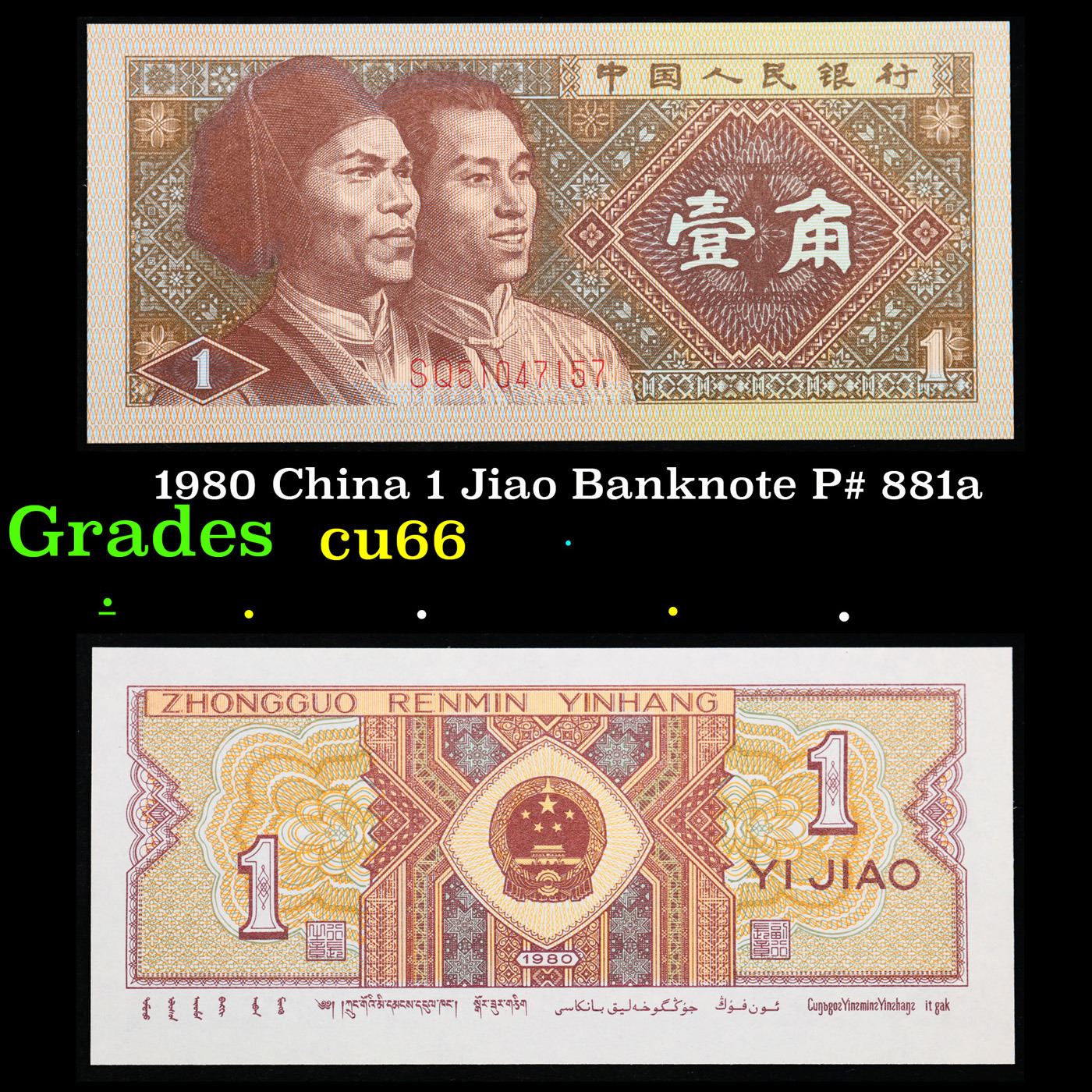 1980 China 1 Jiao Banknote P# 881a Grades Gem+ CU.