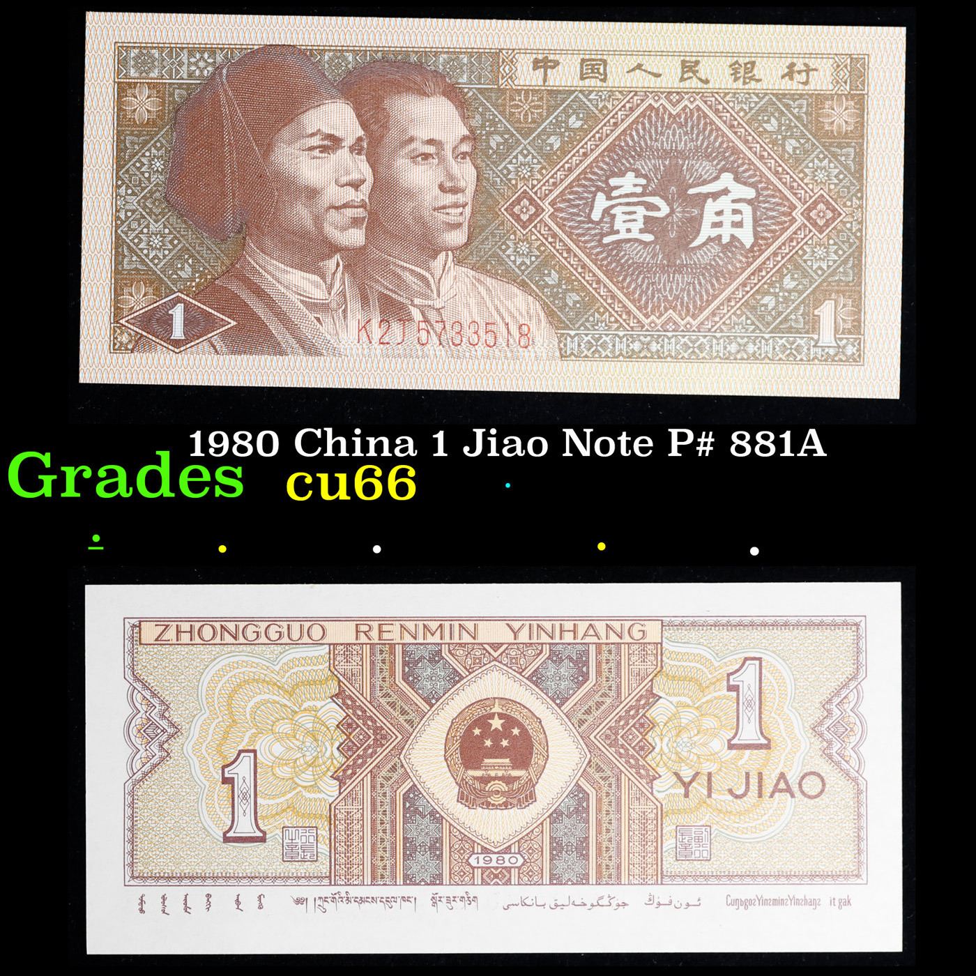 1980 China 1 Jiao Note P# 881A Grades Gem+ CU.