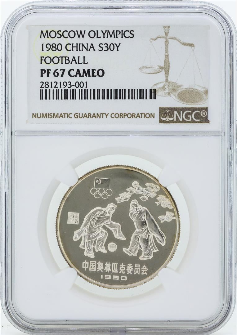 One 1980 China 30 Yuan Football Coin NGC PF67 Cameo. NGC Certified.