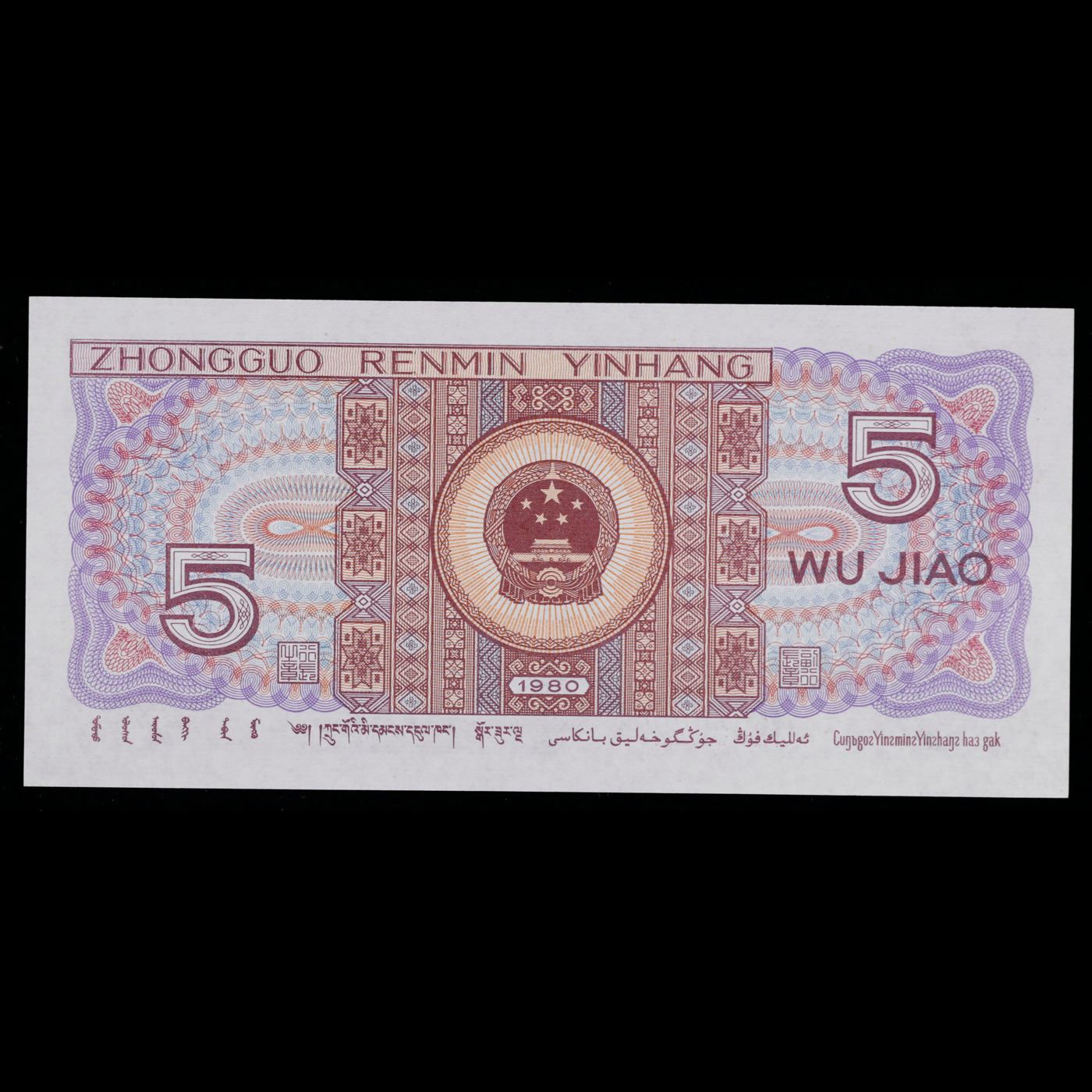 1980 China 5 Jiao Note P# 883A Grades Gem CU.