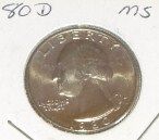 1980 D Quarter MS ***Coin, Currency & All Items Listed in this auction - Grades, Conditions and Values are not Safe Deposit Coins LLC Responsibilty. Grades, Condition and Values are determined by Consigner(s) & Buyers ONLY***