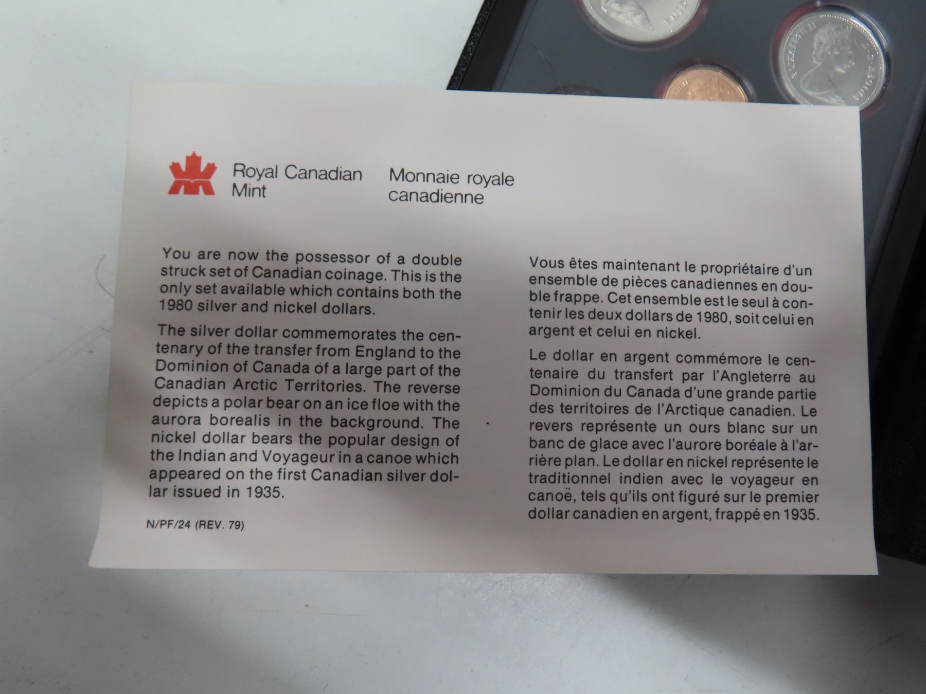 1980 Double Dollar Specimen Set. The Silver Dollar commemorates the 100th Anniversary of Great Britain ceding the Arctic Islands to Canada. Popular Polar Bear. Housed in its original Royal Canadian Mint case of issue. Includes Certificate of Authenticity.