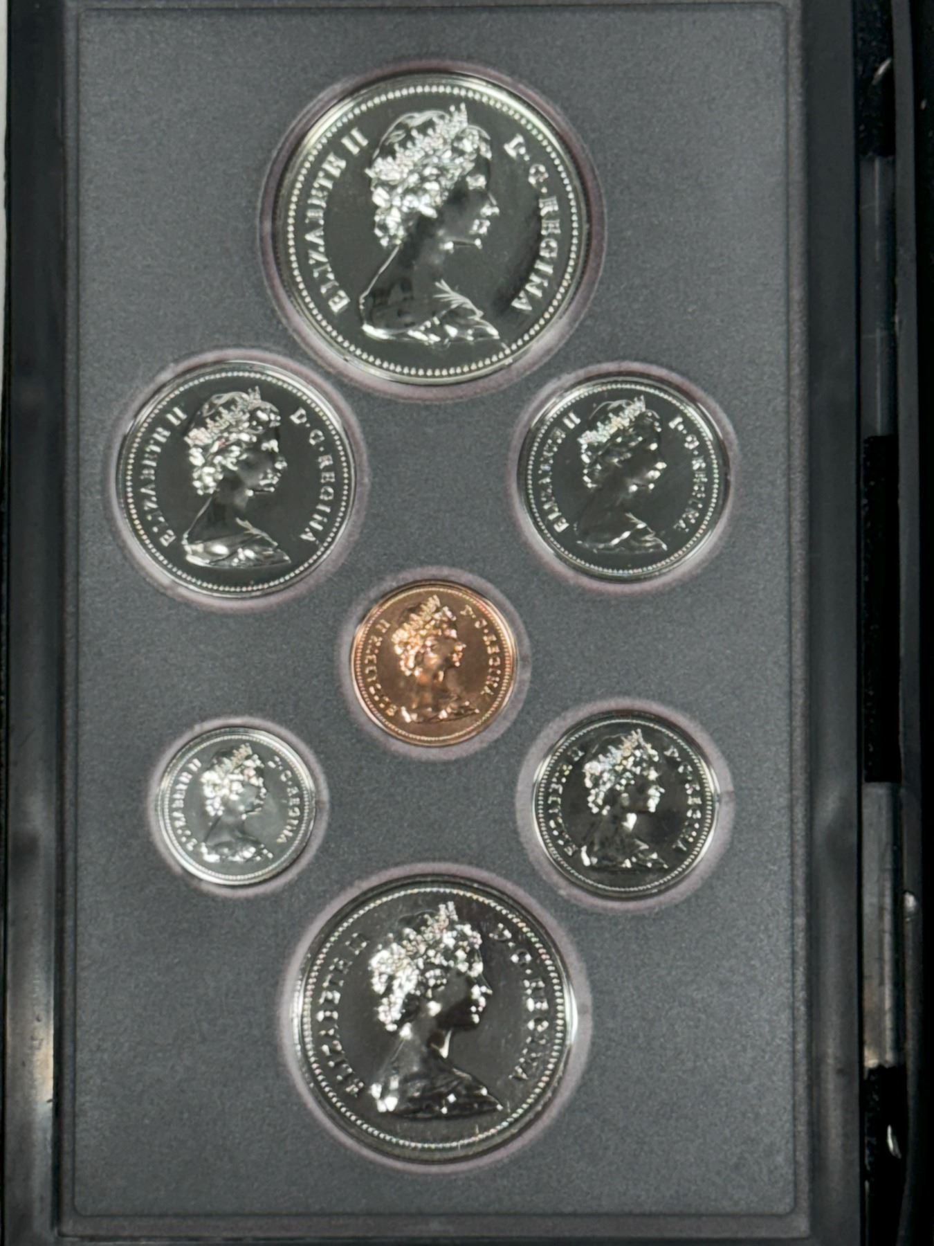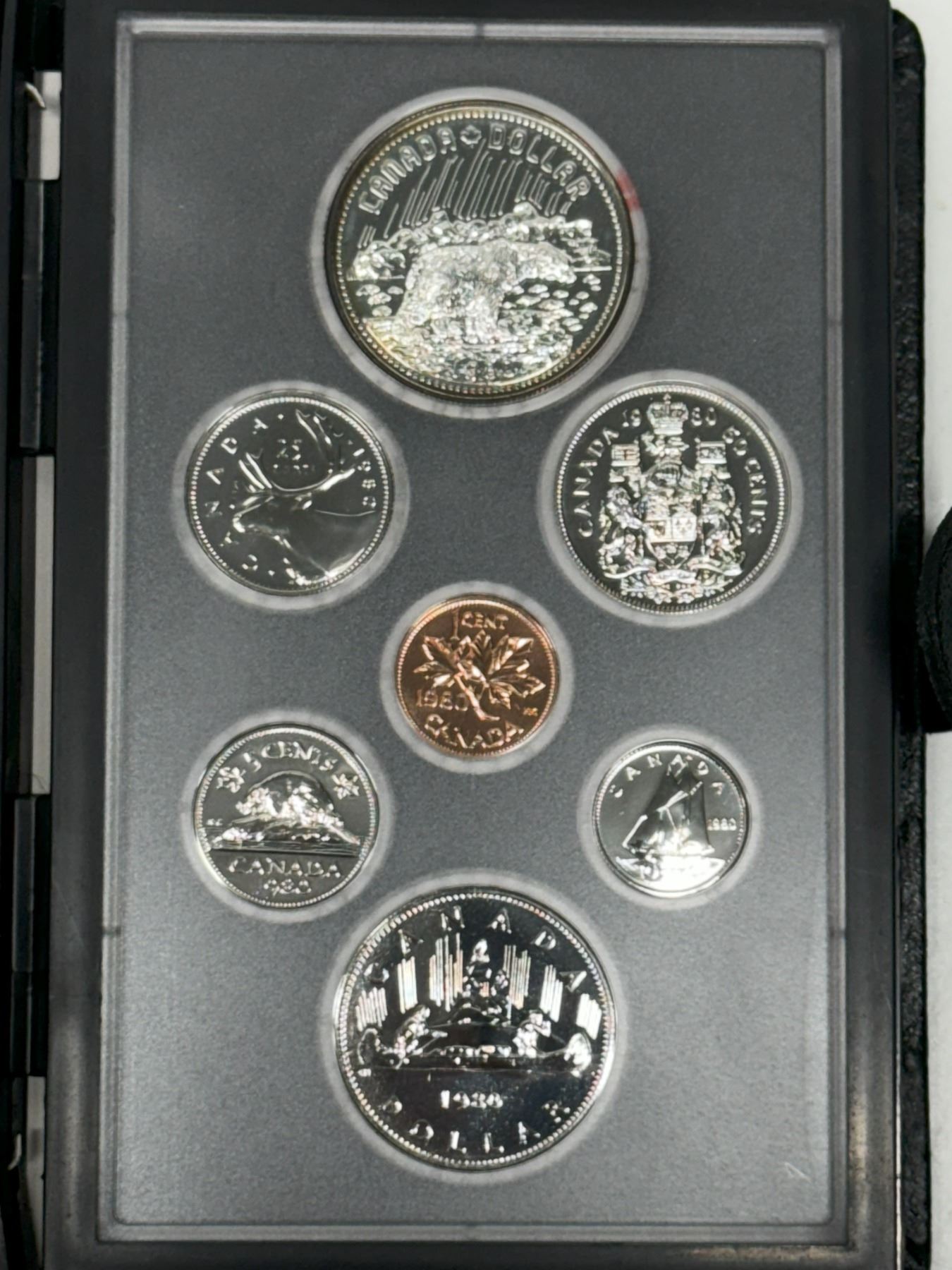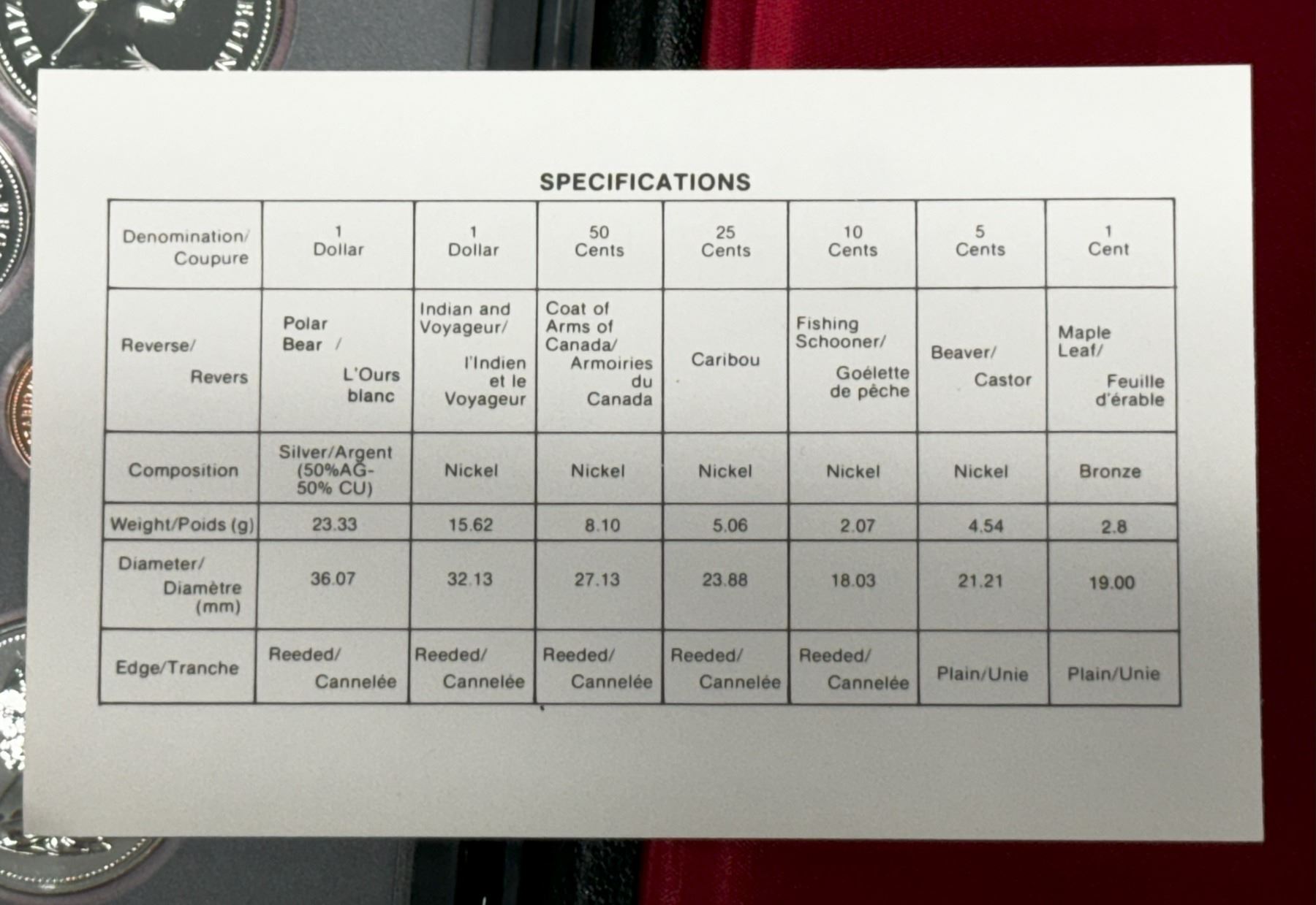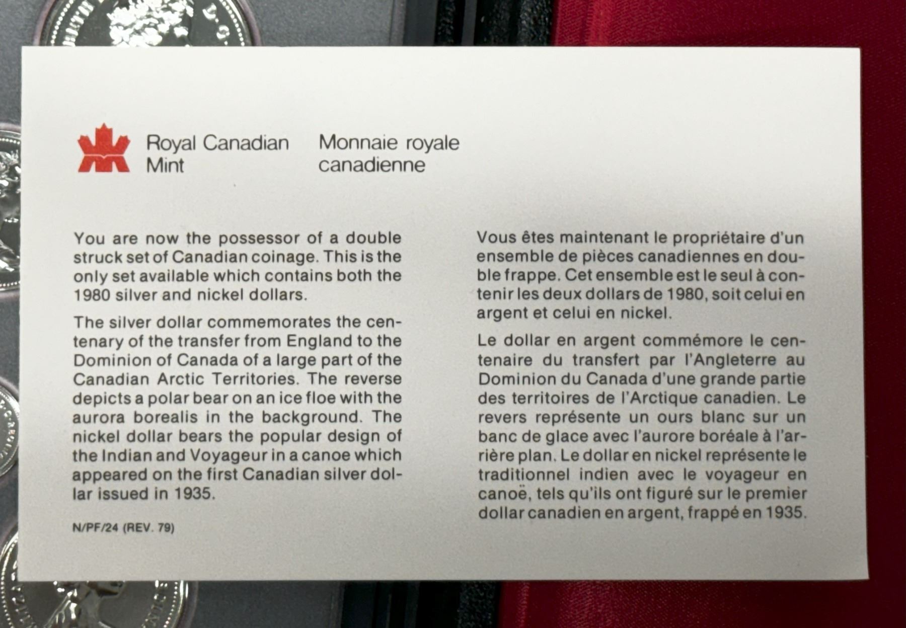 1980 Double Dollar Specimen Set. The Silver Dollar commemorates the 100th Anniversary of Great Britain ceding the Arctic Islands to Canada in 1880. Popular Polar Bear. Housed in its original Royal Canadian Mint case of issue. Includes Certificate of Authenticity.