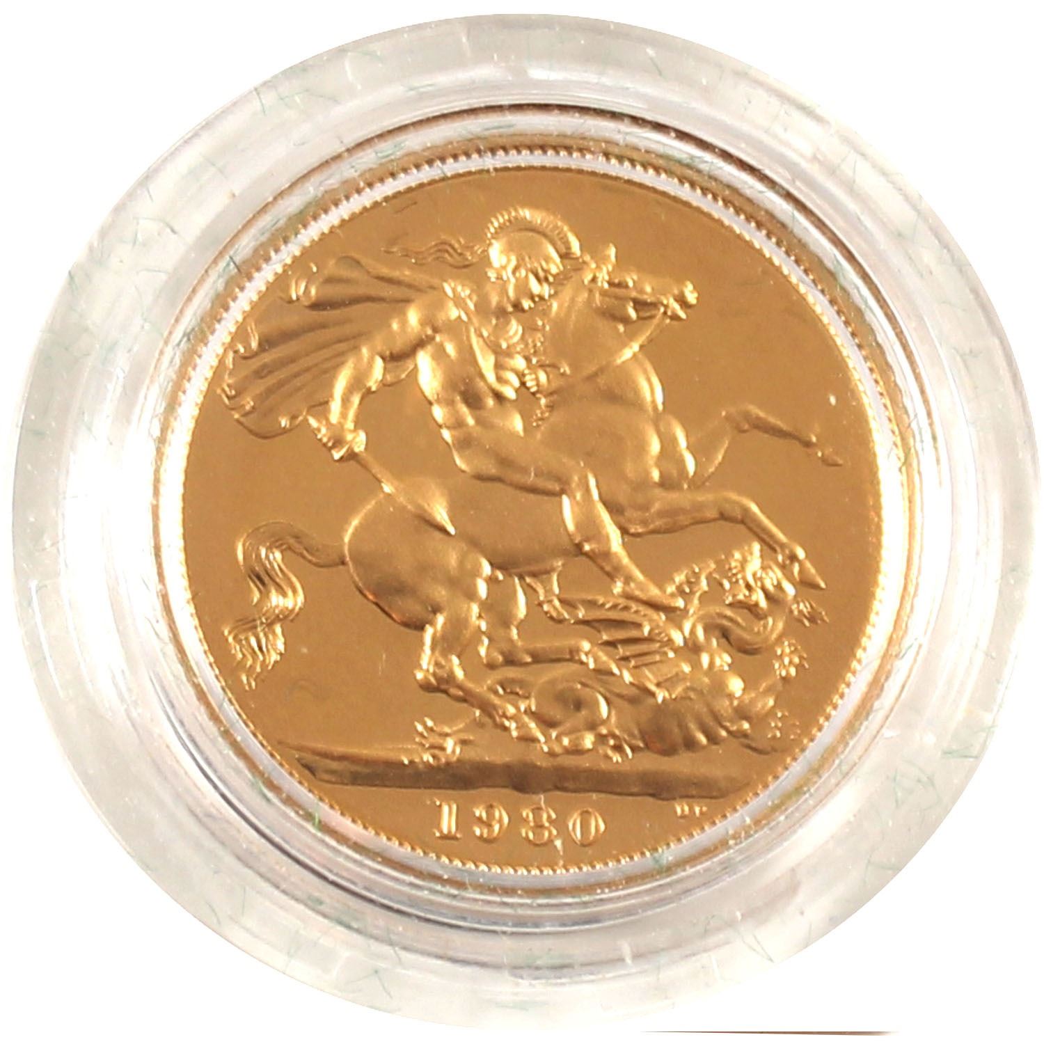 1980 Great Britain Gold Proof Sovereign in Original Green Royal Mint Display. Contains 0.2354oz Fine Gold.