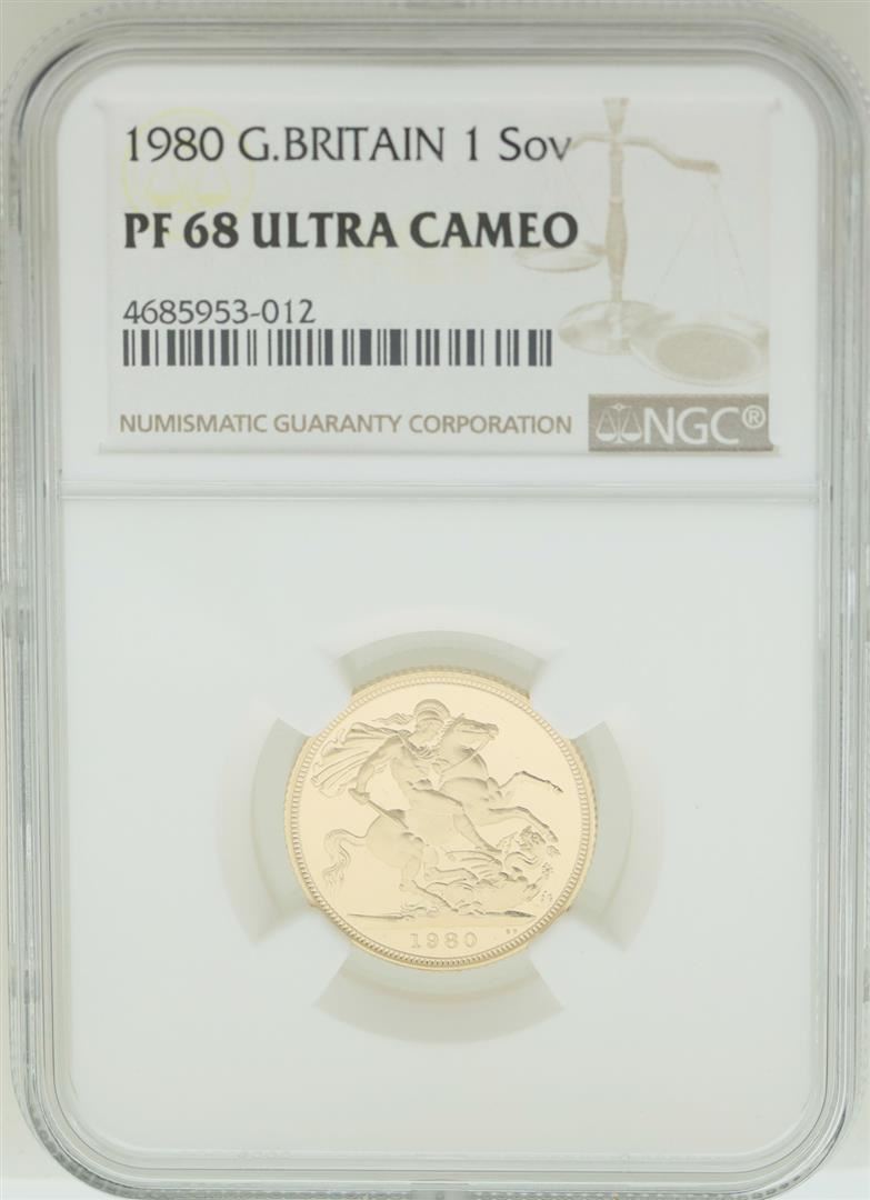 One 1980 Great Britain Sovereign Gold Coin NGC PF68 Ultra Cameo. NGC Certified.