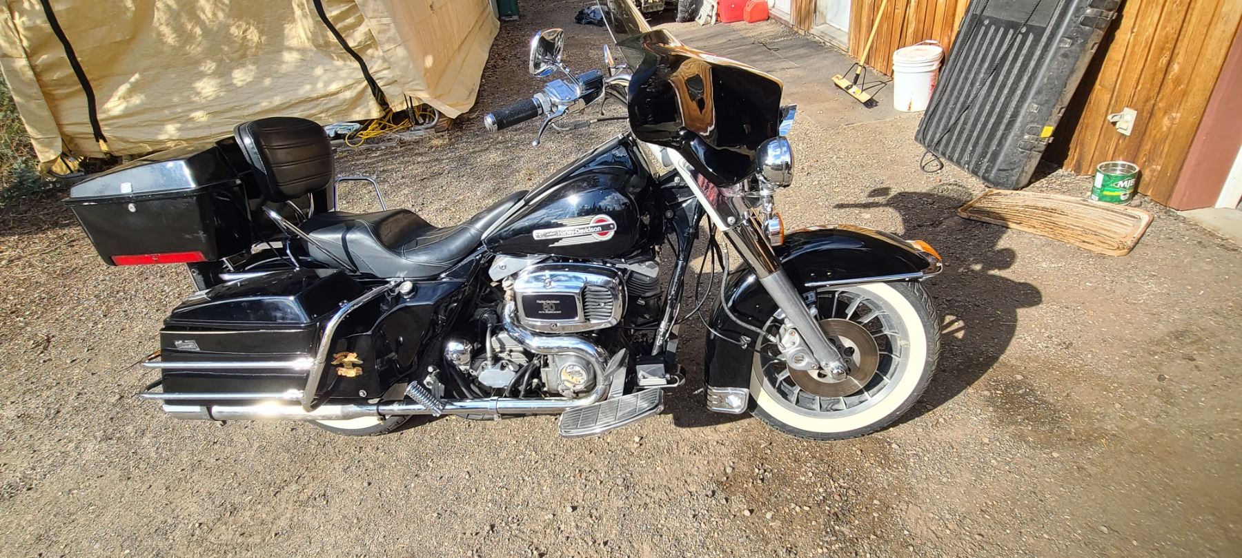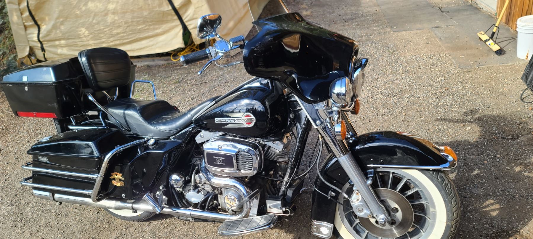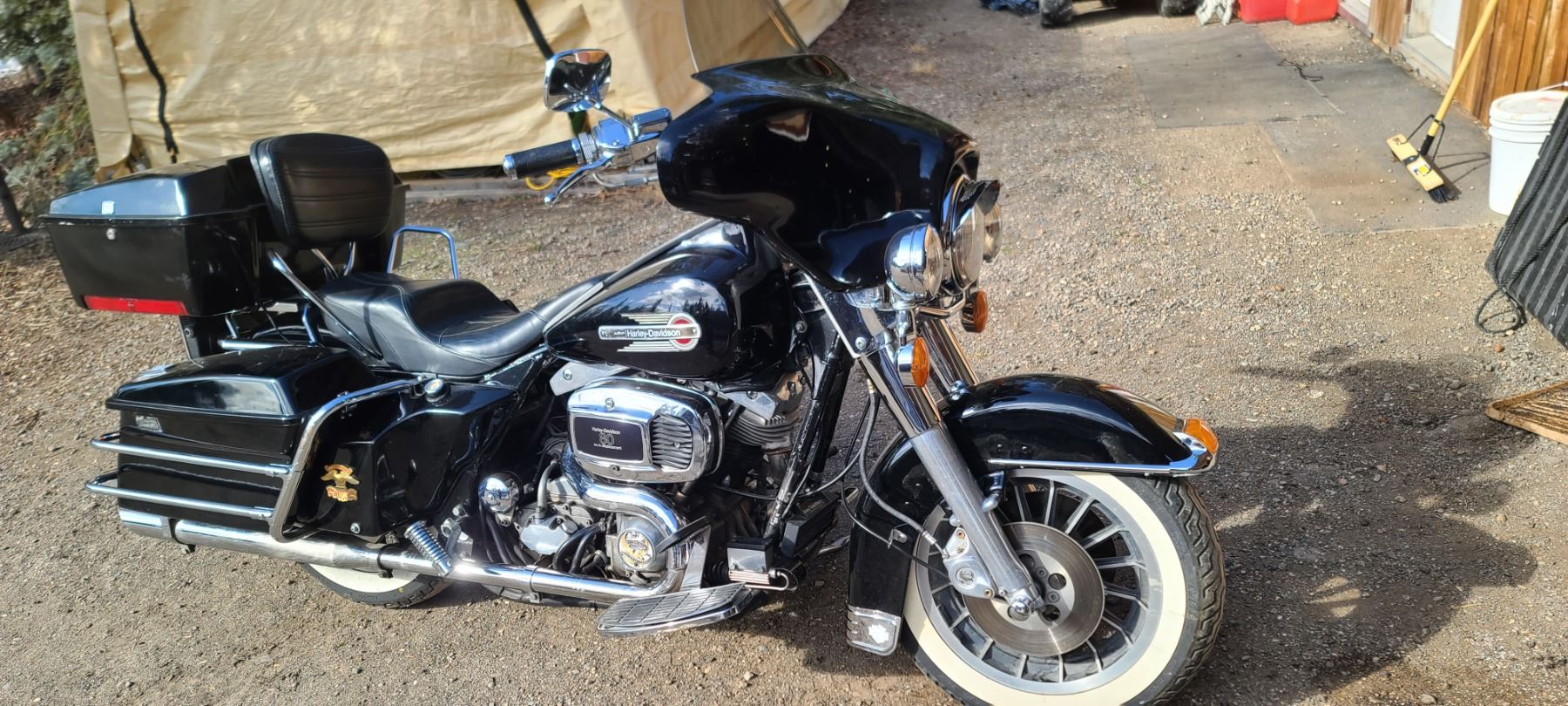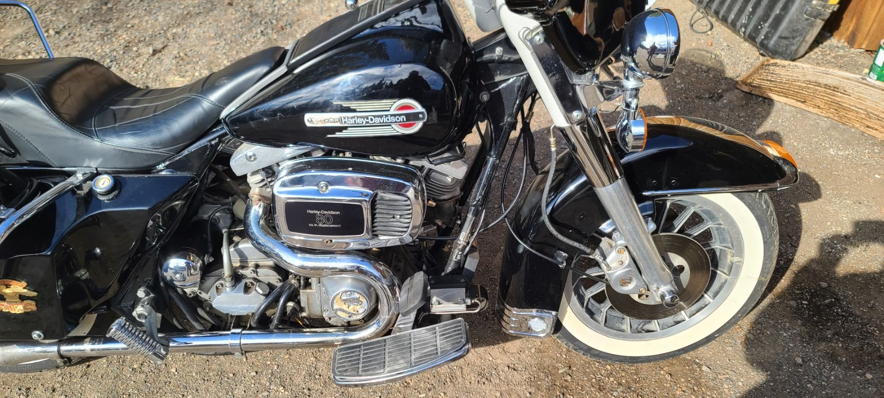1980 HARLEY DAVIDSON FLHS BLACK 1340CC, BATWING FAIRING , WHITE WALL TIRES - GOOD TREAD, COMES WITH