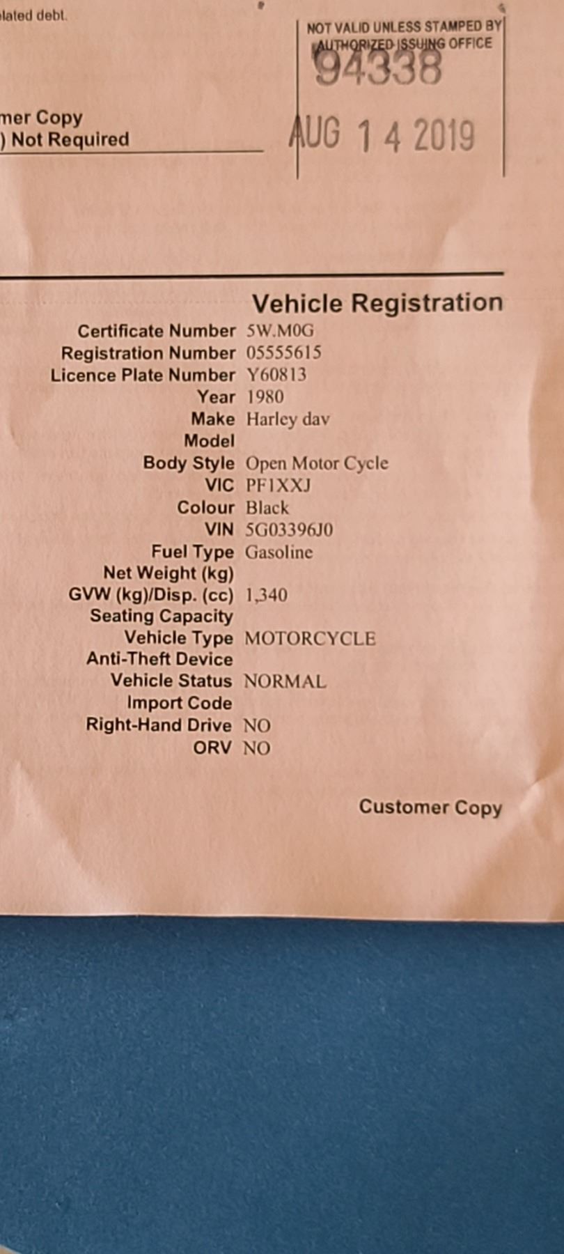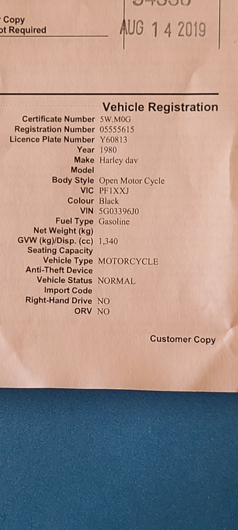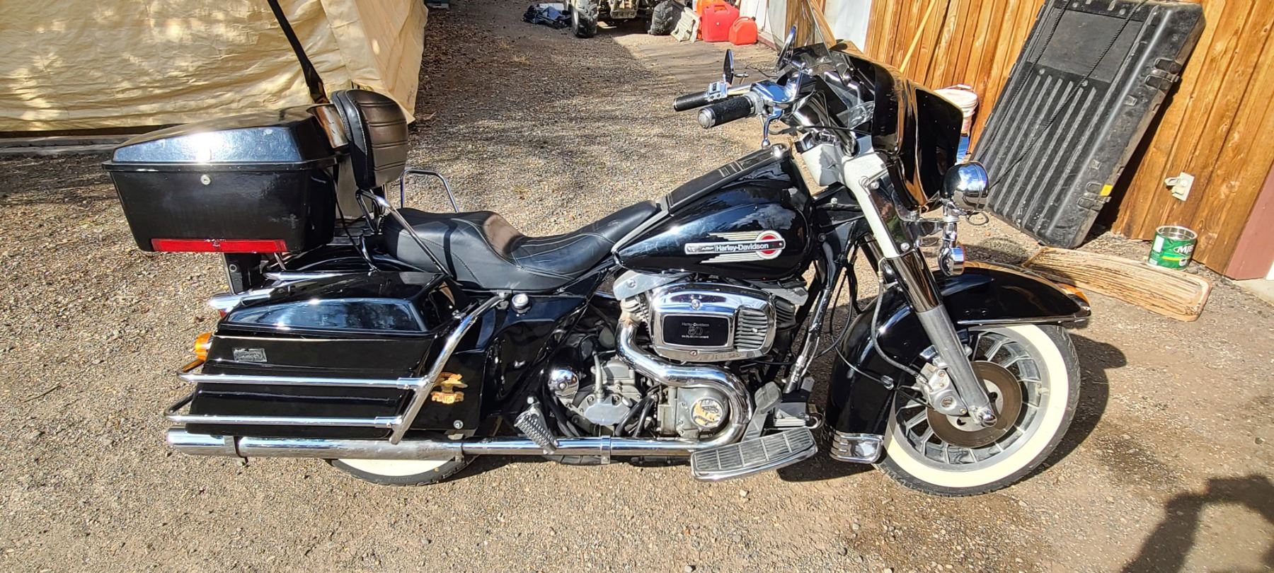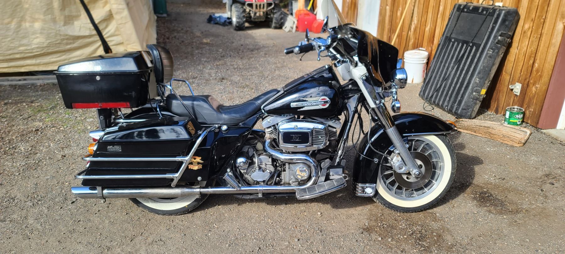 1980 HARLEY DAVIDSON FLHS BLACK 1340CC, BATWING FAIRING , WHITE WALL TIRES - GOOD TREAD, COMES WITH