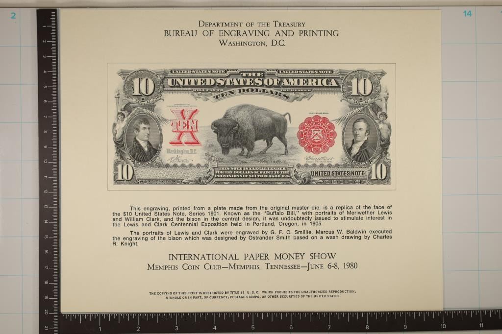 TENNESSEE SOUVENIR CARD FEATURING THE OBVERSE OF A 1901 US $10 NOTE. ALSO KNOWN AS THE BUFFALO BILL, PRINTED BY THE BUREAU OF ENGRAVING AND PRINTING