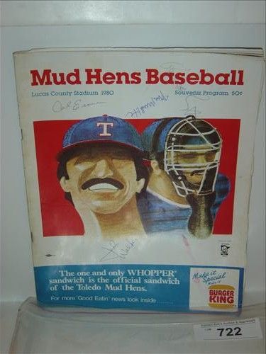 1980 MUD HENS BASEBALL PROGRAM AUTOGRAPHED BY RON WASHINGTON, CAL ERMER, JOHN WALKER, AND ONE OTHER. AS SHOWN. VIEW PICTURE FOR DETAIL.