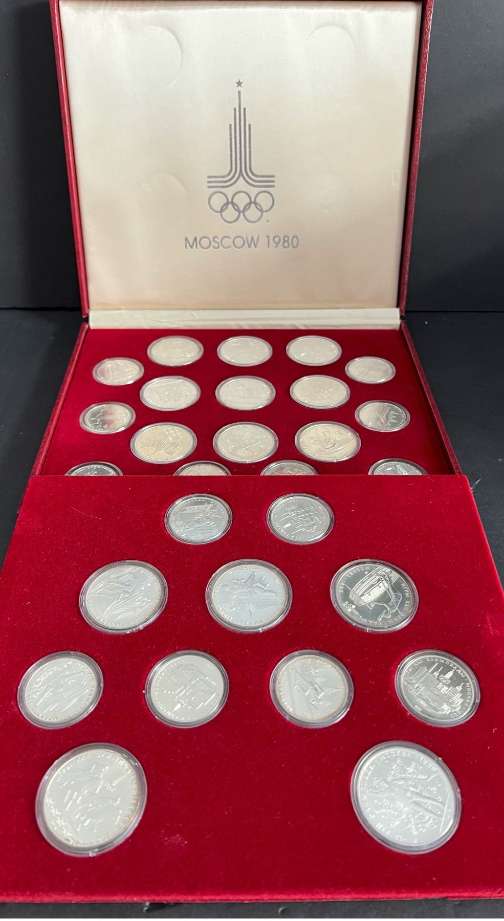 1980 Moscow Olympic 28 Coin set housed in red leather case.