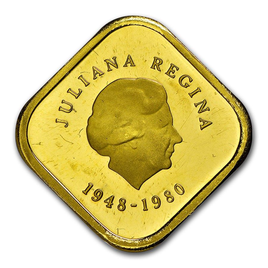 1980 Netherlands Antilles Gold Pattern 300 Gulden PF-63 NGC (UC)
