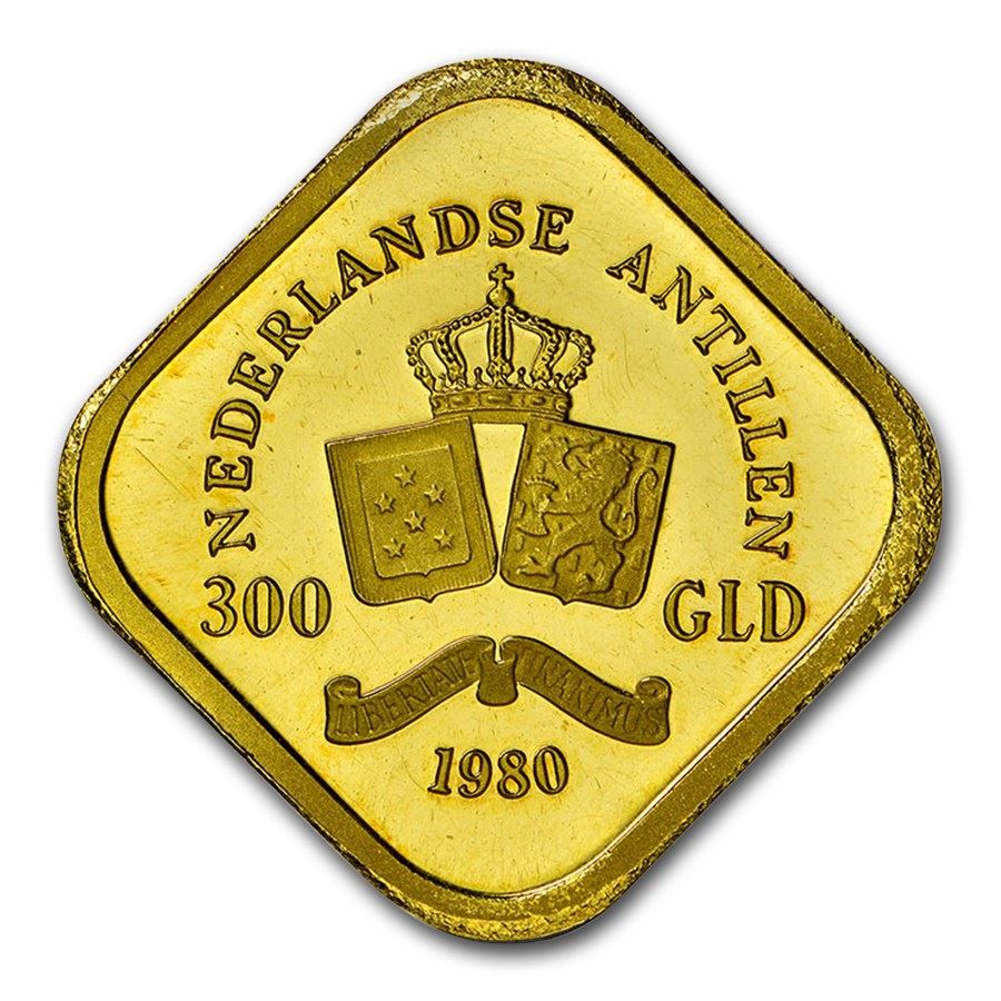 1980 Netherlands Antilles Gold Pattern 300 Gulden PF-63 NGC (UC)