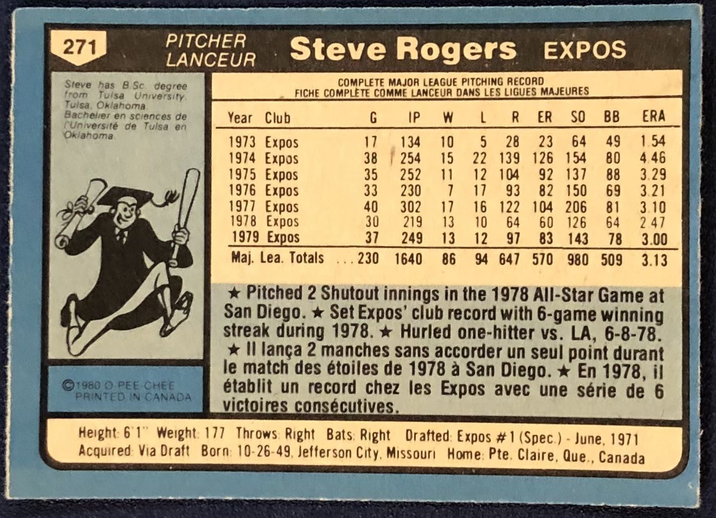 Card #271 OPC, MLB, baseball, vintage