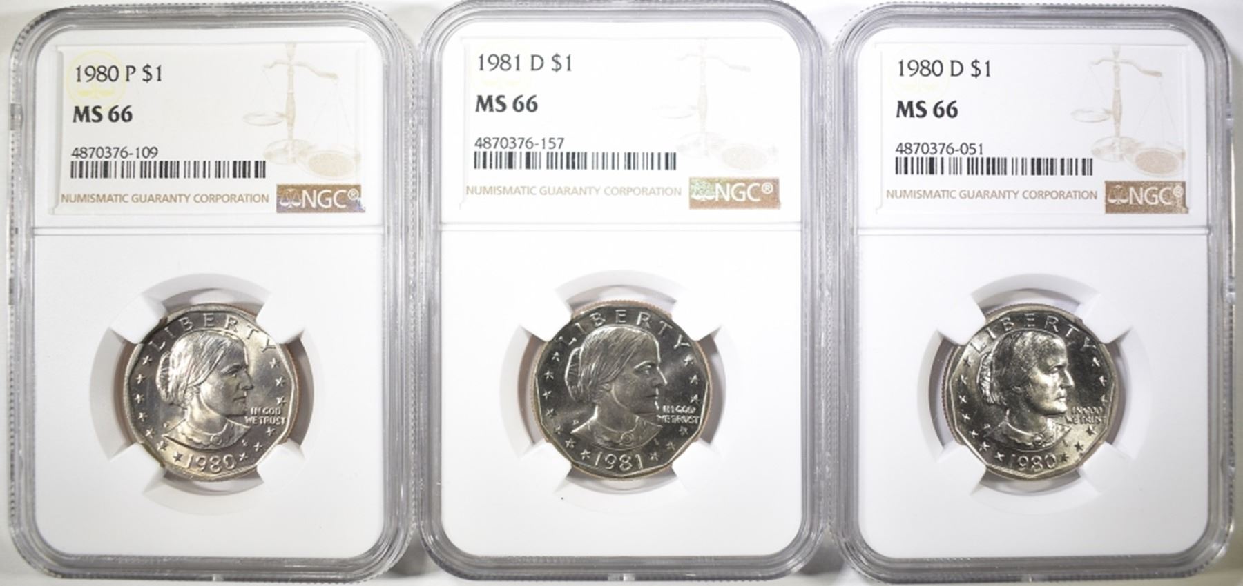 1980-P&D, 81-D S.B.A. DOLLARS, NGC MS-66