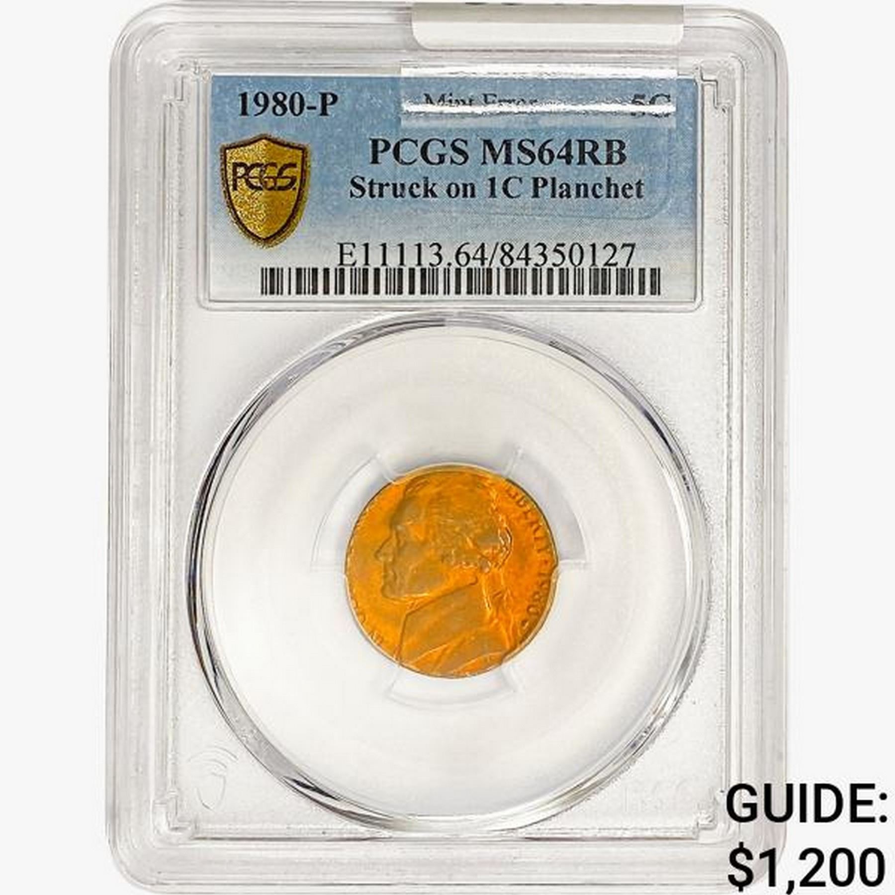1980-P Mint Error Jefferson Nickel PCGS MS64 RB