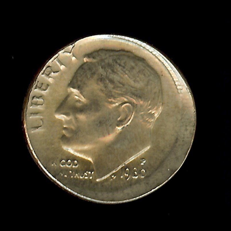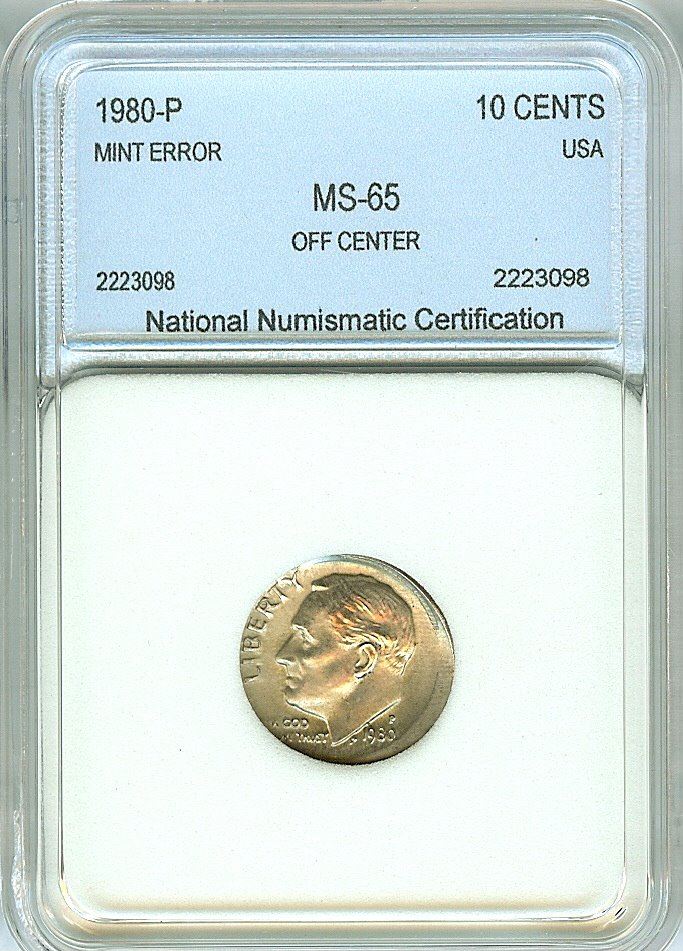 1980-P ROOSEVELT 10 CENTS -OFF CENTER MINT ERROR- NNC MS-65