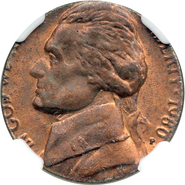 1980-P Struck on a 1¢ Planchet 3.07 Grams. NGC graded MS-63 Red & Brown Mint Error.
