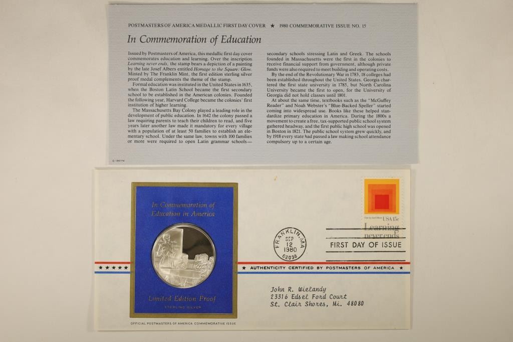 WITH STERLING SILVER ROUND AND INFO CARD BY THE FRANKLIN MINT 39MM JUST UNDER 1 OZ. COMMEMORATION OF EDUCATION IN AMERICA