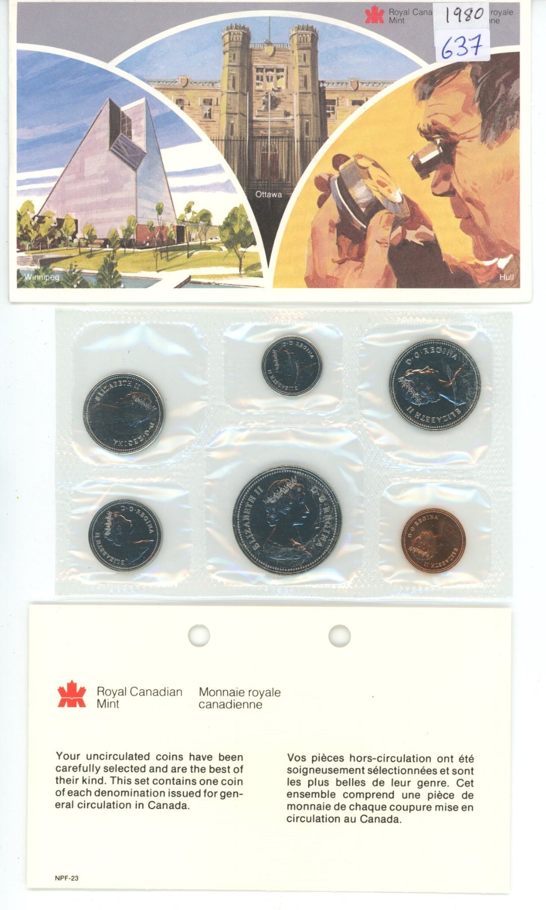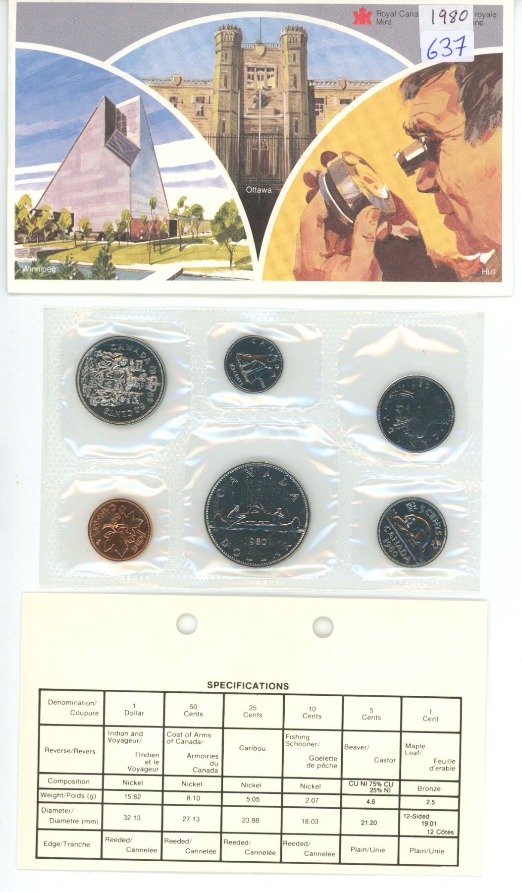 1980 Proof Like Set. 6-coin set as issued by the Royal Canadian Mint.