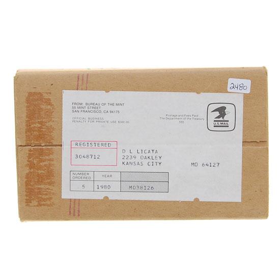Very rare unopened mailer of 5 sets; coins inside have for sure never been seen or searched; potential for high grade coins errors/varieties; HUGE POSSIBLE VALUE UP TO $4250+ PER COIN; these sealed mailer box sets sell at a large premium to opened sets; B