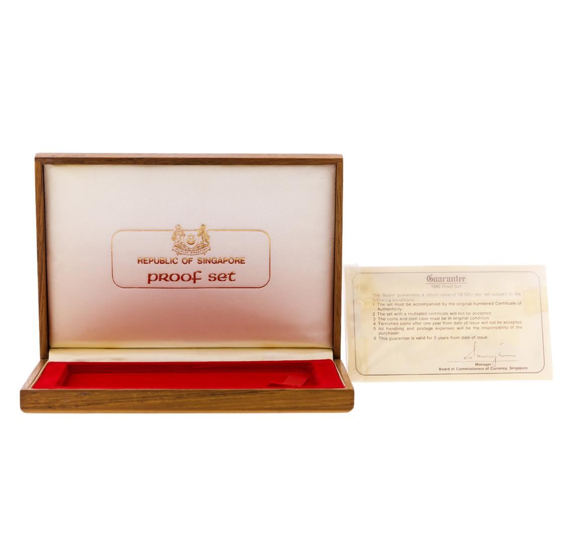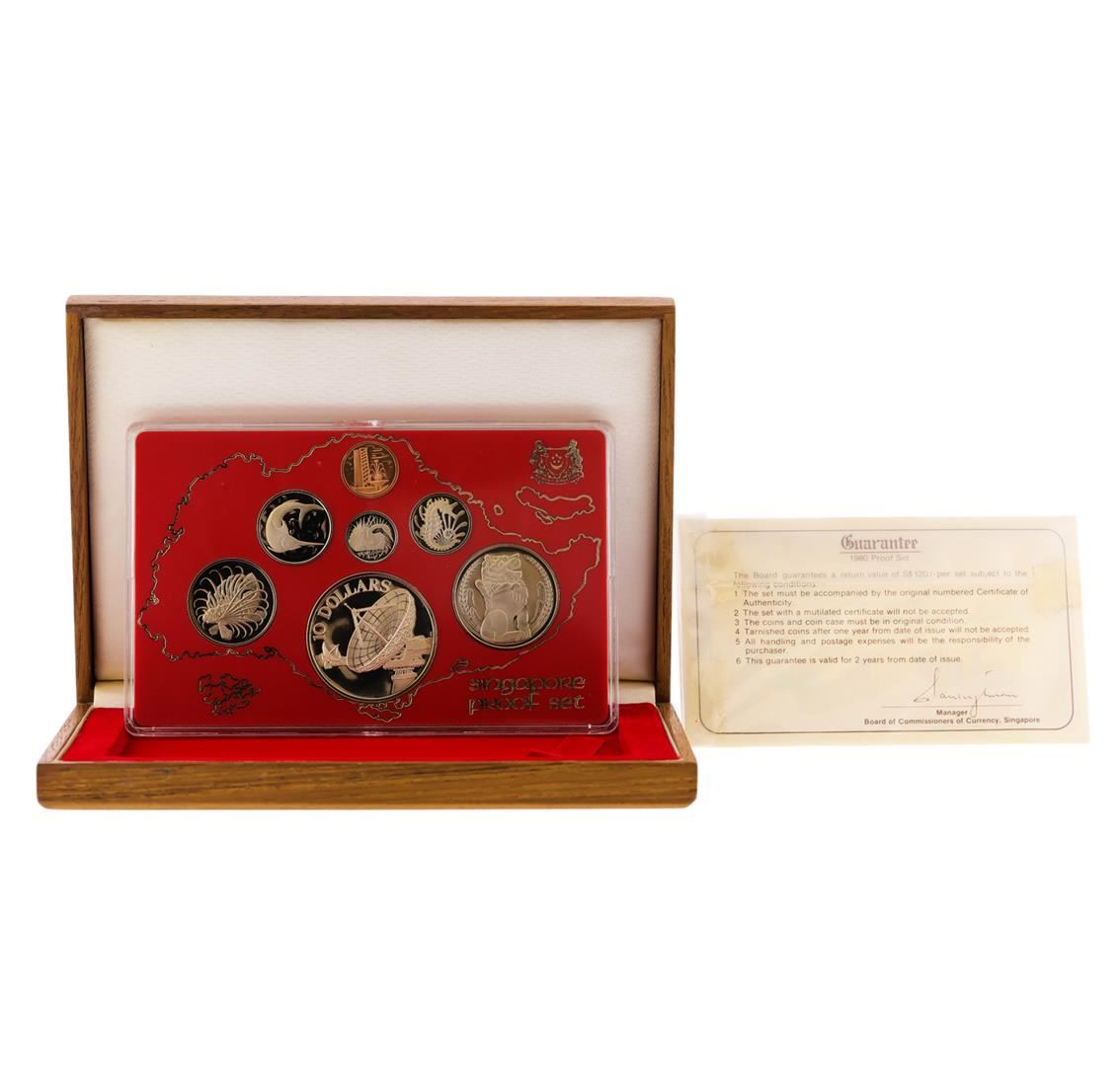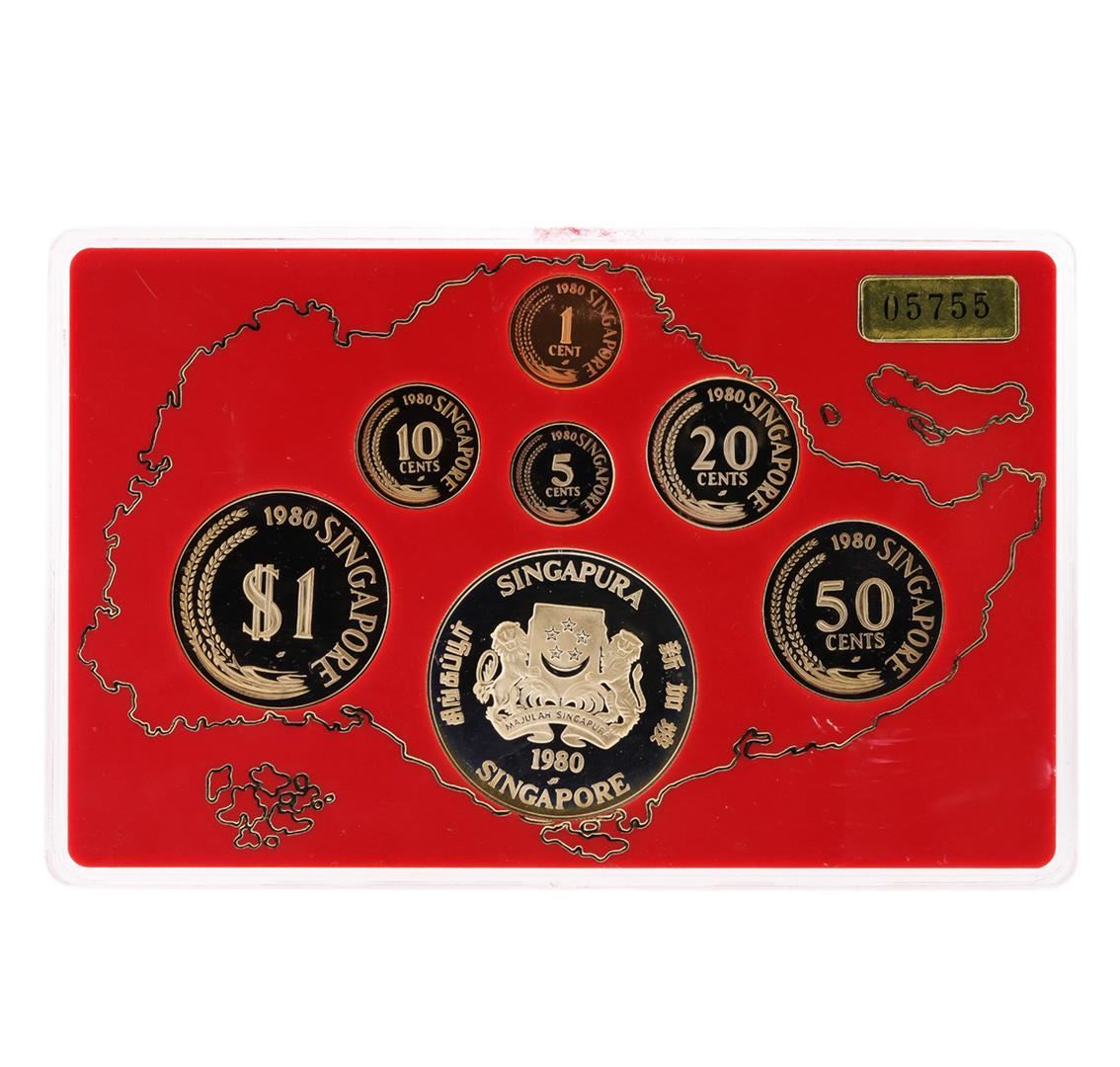 One 1980 Republic Of Singapore 7-Coin Proof Set w/display case and COA. The set has a mintage of 14,000 and this is #05755.