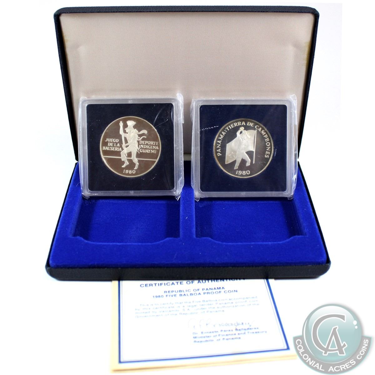 1980 Republic of Panama 5 & 10 Balboa Proof Coin set. Please note coins have light toning.