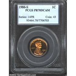 1980-S 1C PR70 Deep Cameo PCGS. This Superb Gem is a true proof masterpiece. Only sixteen 1980-S Lin