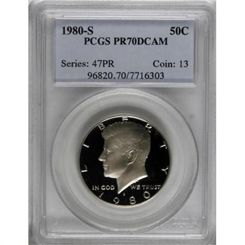 <B>1980-S 50C PR70 Deep Cameo PCGS.</B></I> PCGS Population (66/0). NGC Census: (6/0). Numismedia Wsl. Price for NGC/PCGS coin in PR70: $400. (#96820)<BR><BR><b>Shipping:</b> Coins & Currency (<a target="_blank" href="http://www.heritageauctions.com/common/shipping.php">view shipping information</a>)