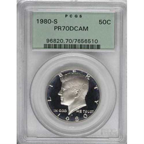<B>1980-S 50C PR70 Deep Cameo PCGS.</B></I> PCGS Population (67/0). NGC Census: (6/0). Numismedia Wsl. Price for NGC/PCGS coin in PR70: $400. (#96820)<BR><BR><b>Shipping:</b> Coins & Currency (<a target="_blank" href="http://www.heritageauctions.com/common/shipping.php">view shipping information</a>)