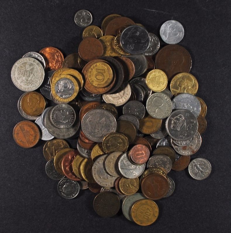 1980'S & OLDER MIX OF UNSEARCHED FOREIGN COINS, MANY LARGER COINS (5 POUND BAG)