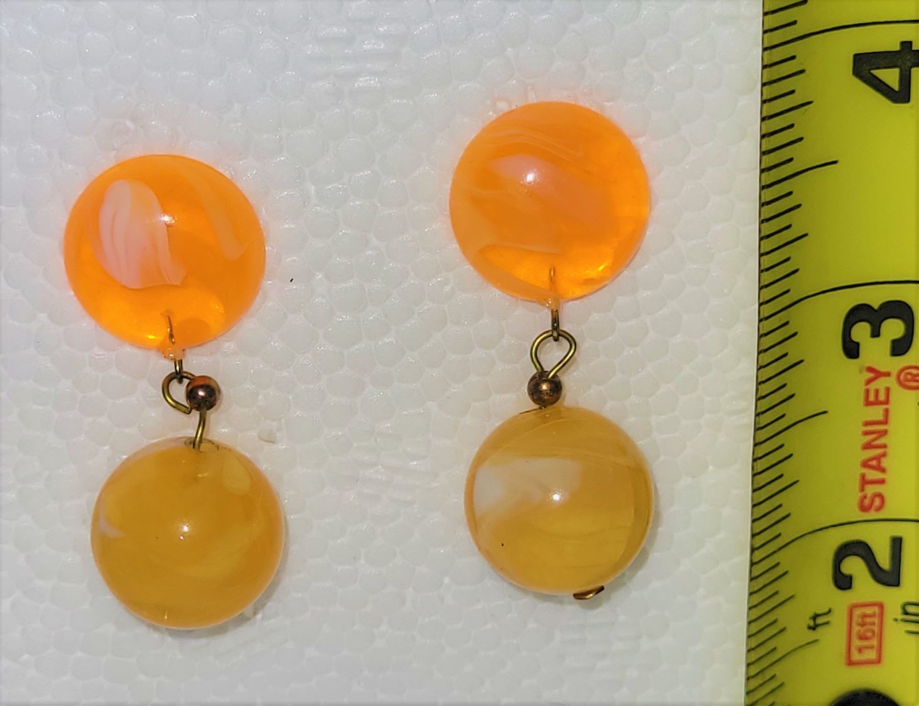 1980'S ORANGE PLASTIC DROP JACKET STYLE EARRINGS. POST BACK. THESE MIGHT EVEN BE BAKELITE (?). FROM ESTATE. SEE PICTURES AND JUDGE FOR YOURSELF!