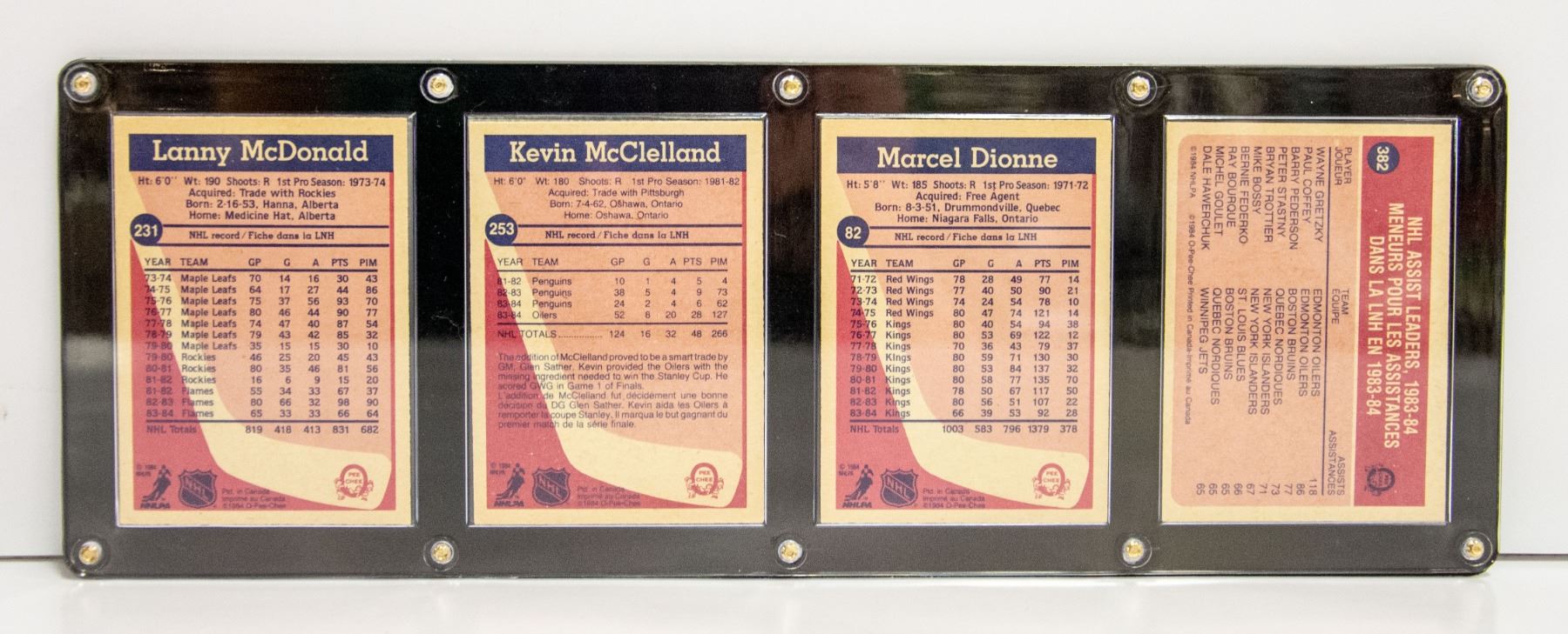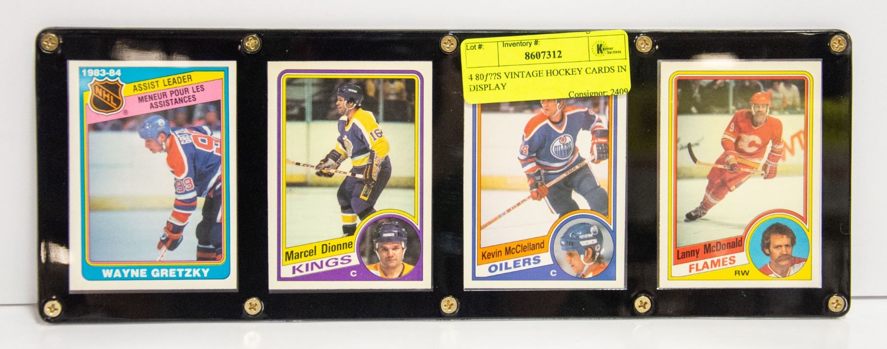 1980'S VINTAGE HOCKEY CARDS IN DISPLAY